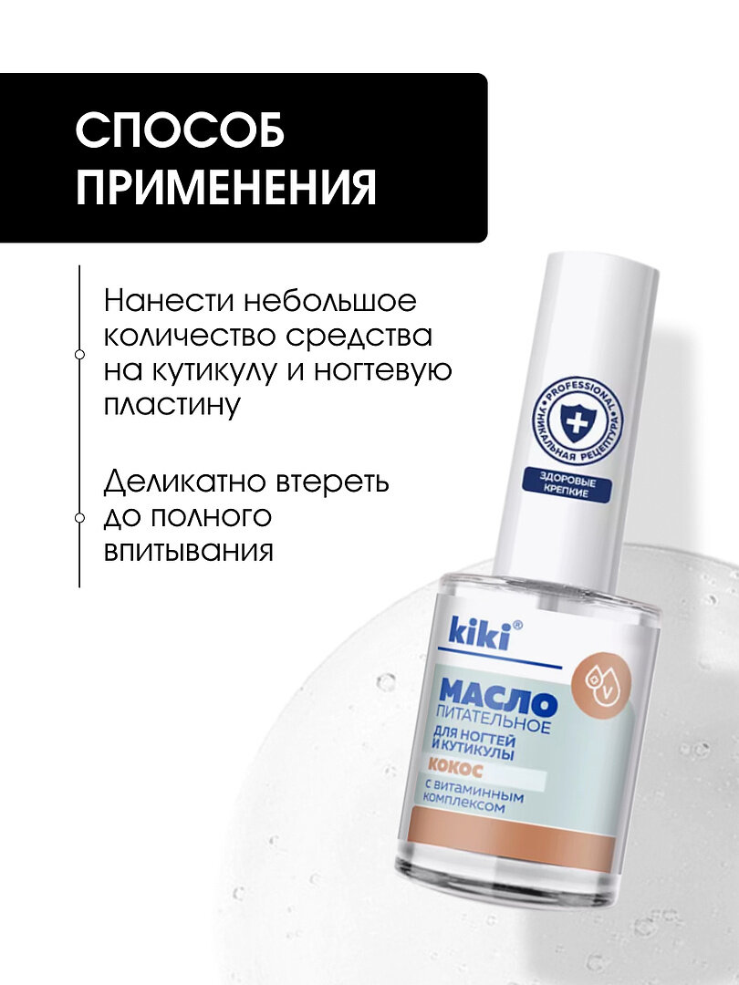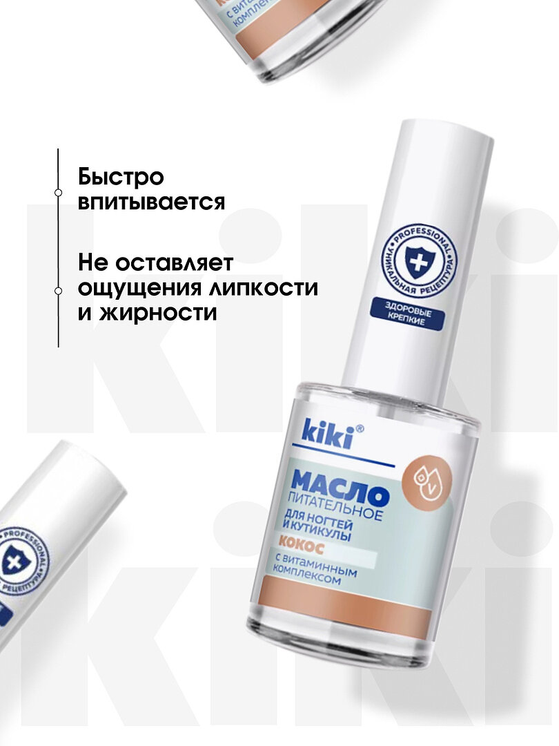 Масло для ногтей и кутикулы kiki кокос, укрепление,питание, восстановление, для маникюра и педикюра, 12 мл