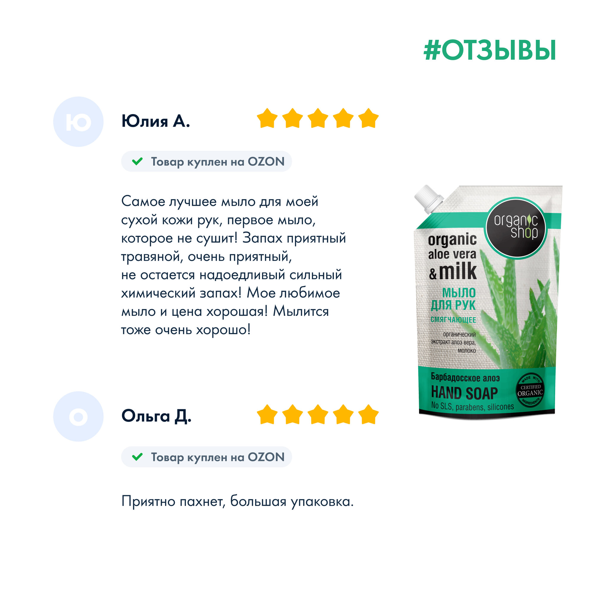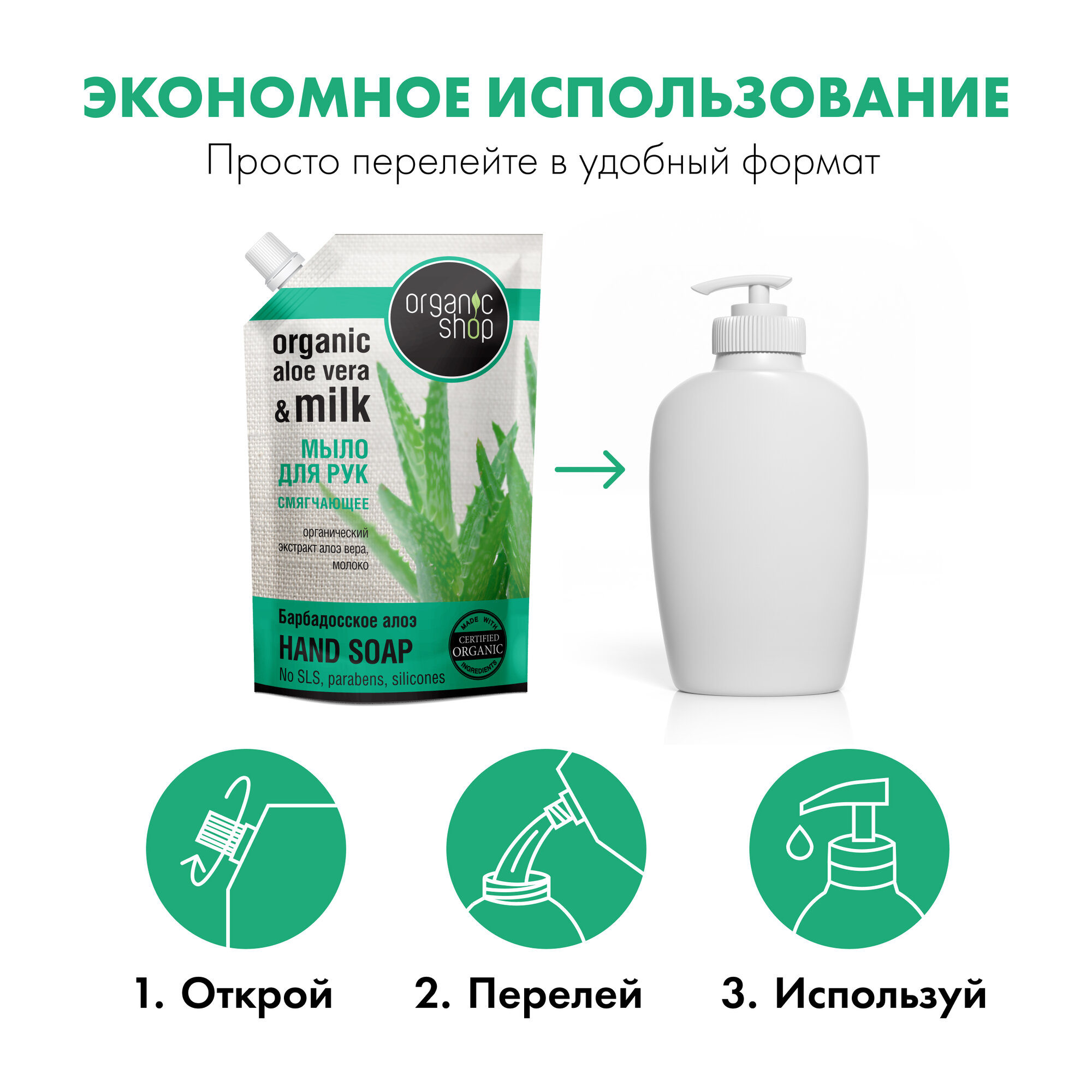 Жидкое мыло для рук Organic Shop барбадосское алоэ дой пак 500 мл