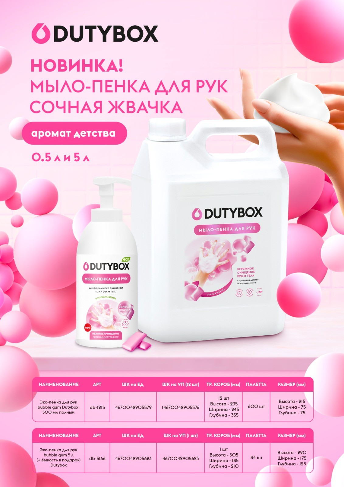 Мыло-пена для рук Dutybox "Малина в йогурте", 5 литров, с дозатором в подарок