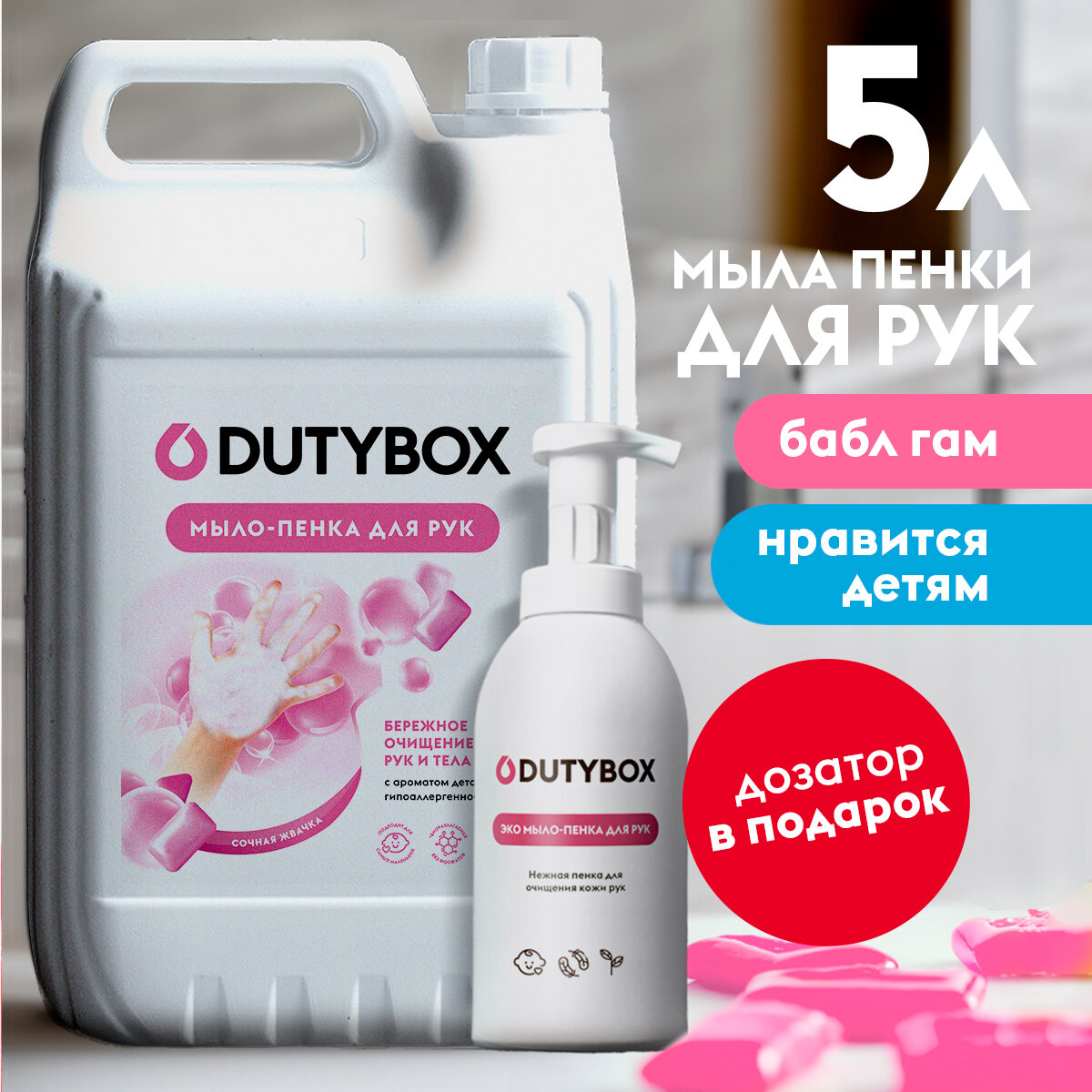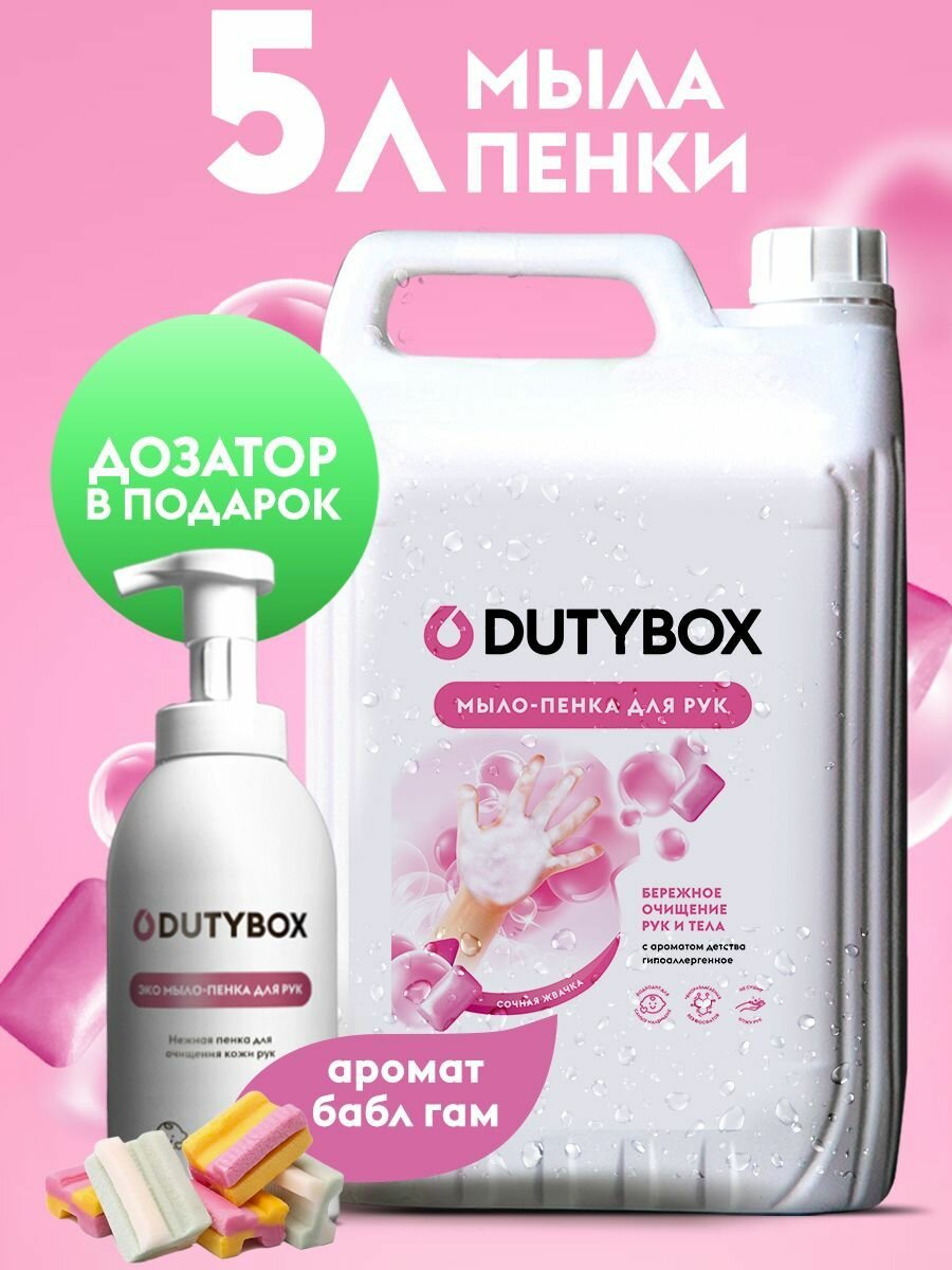 Жидкое мыло для рук Dutybox 5 л с ароматом жвачки Баблгам + дозатор