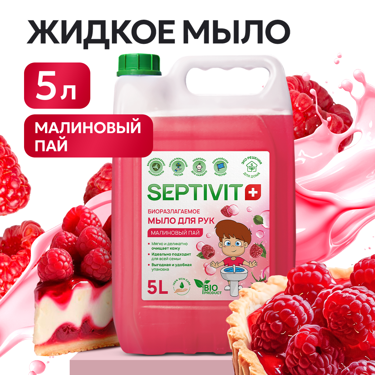 Жидкое мыло Septivit Малиновый пай, 5 л