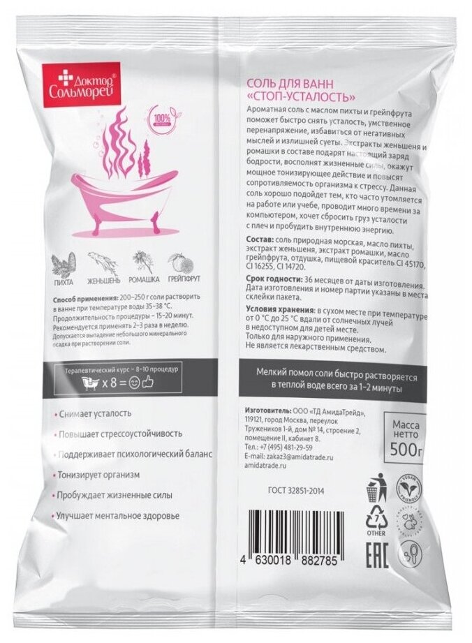 Доктор Сольморей Стоп-усталость соль для ванн, 500 г