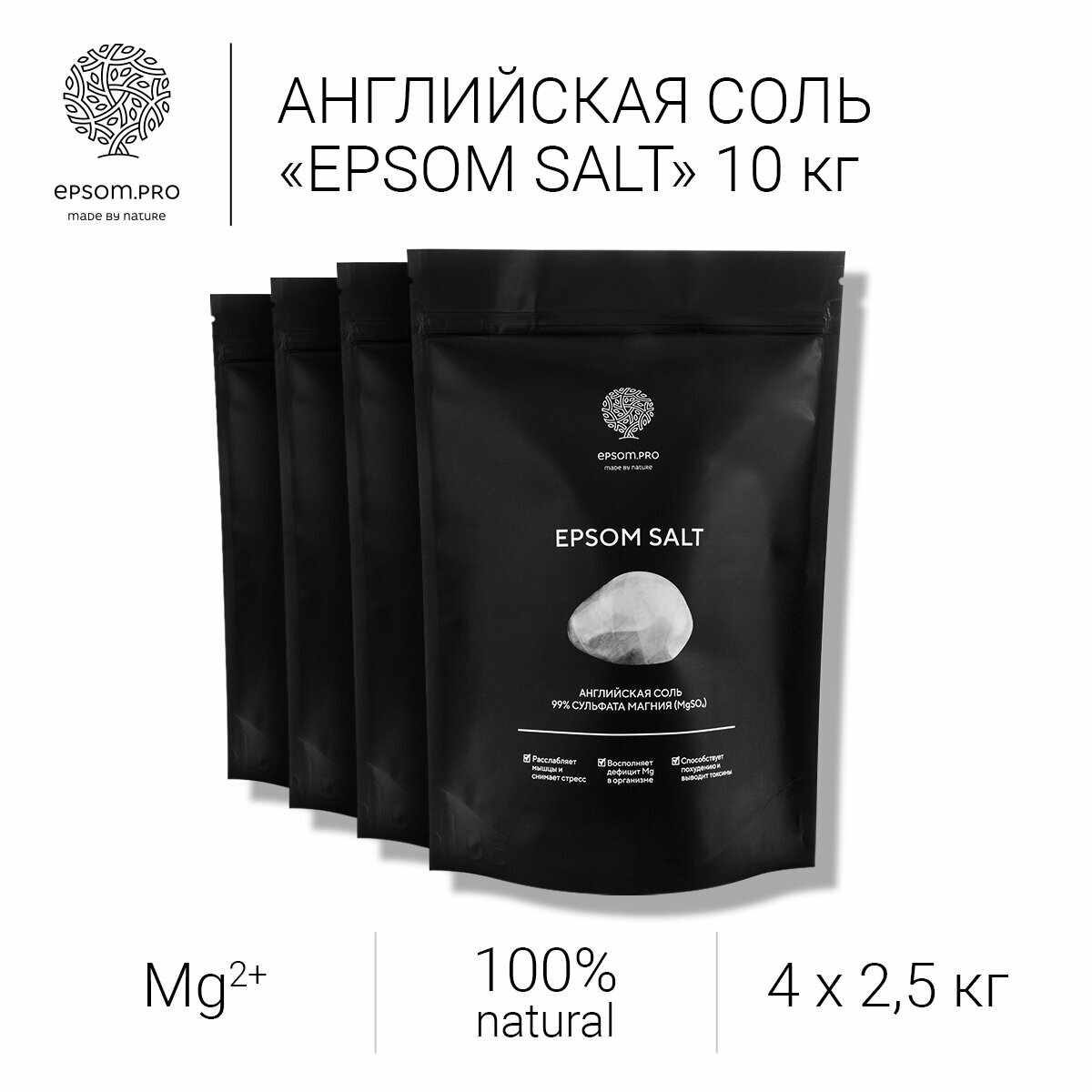 Купить Соль для ванны Epsom.pro, Магниевая соль для ванны , премиальная английская соль, 2,5 кг "4 шт"
