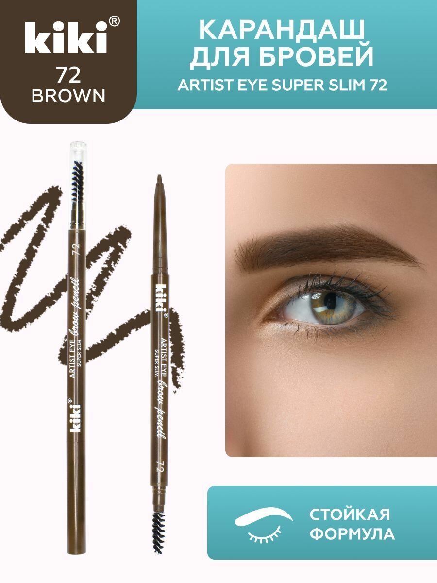 Купить Карандаш для бровей kiki ARTIST EYE SUPER SLIM, тон 72, автоматический, стойкая структура, коричневый, с щеточкой-расческой для придания формы