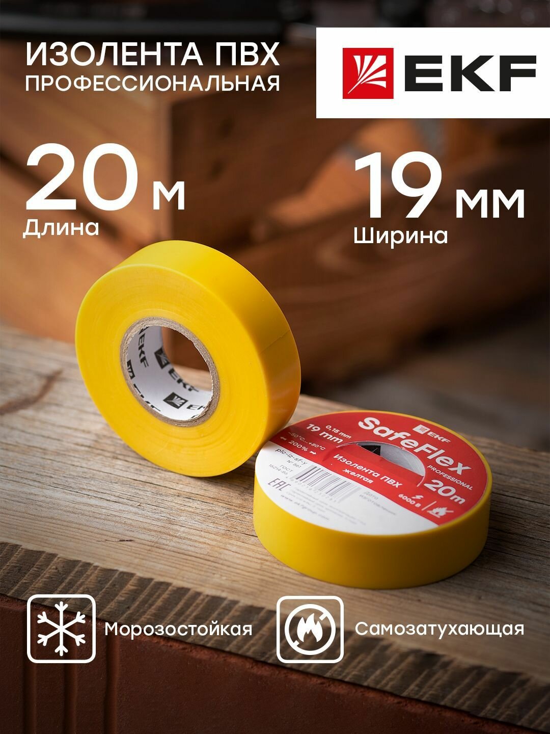 Изолента EKF SafeFlex PROxima ПВХ 19мм 20м желтая plc-iz-sf-y (комплект 2шт.)