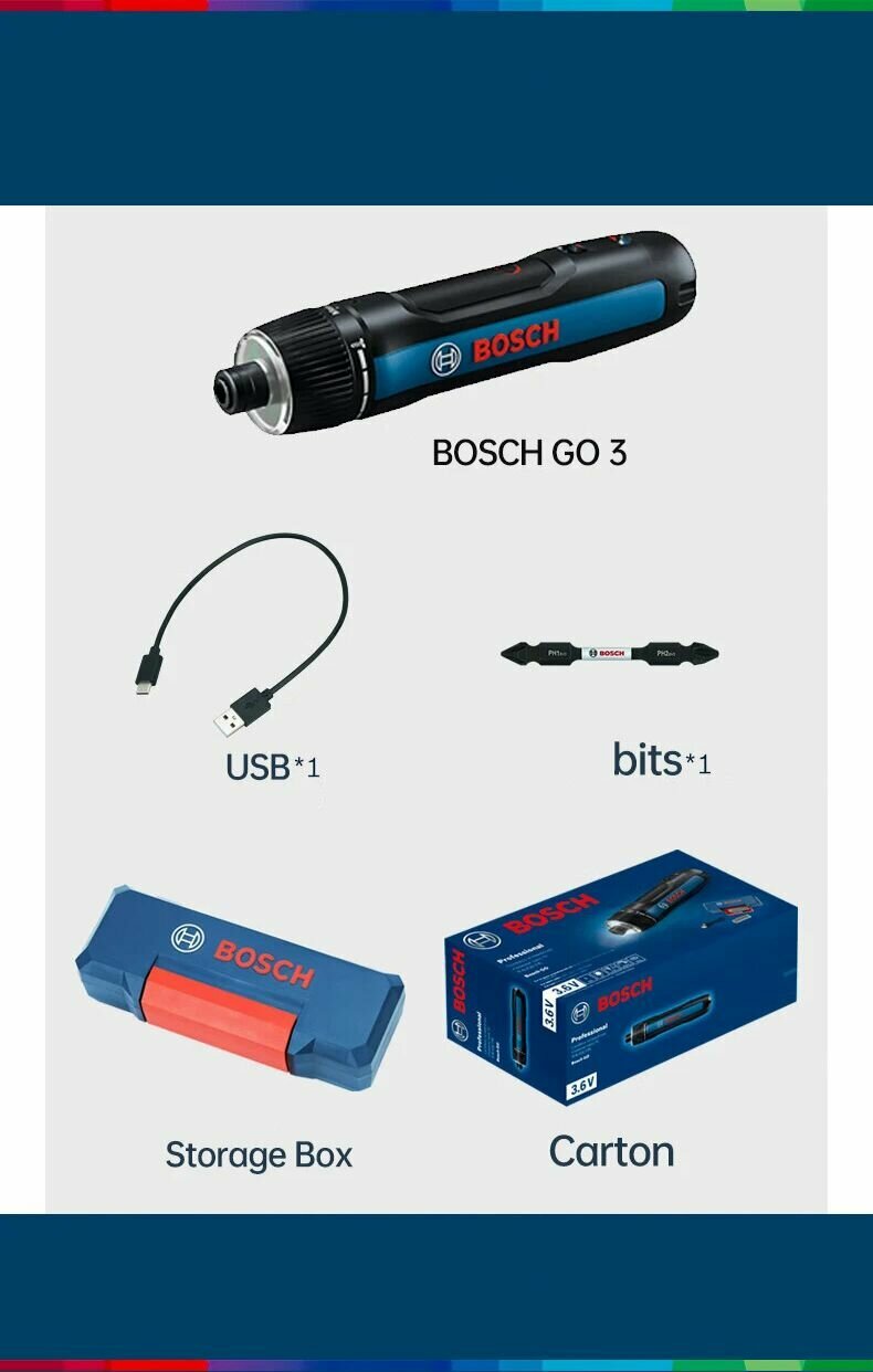 BOSCH GO 3 Аккумуляторная отвертка, емкость аккумулятора 2 Ah, мощность 5 Нм, электрическая отвертка интересное: