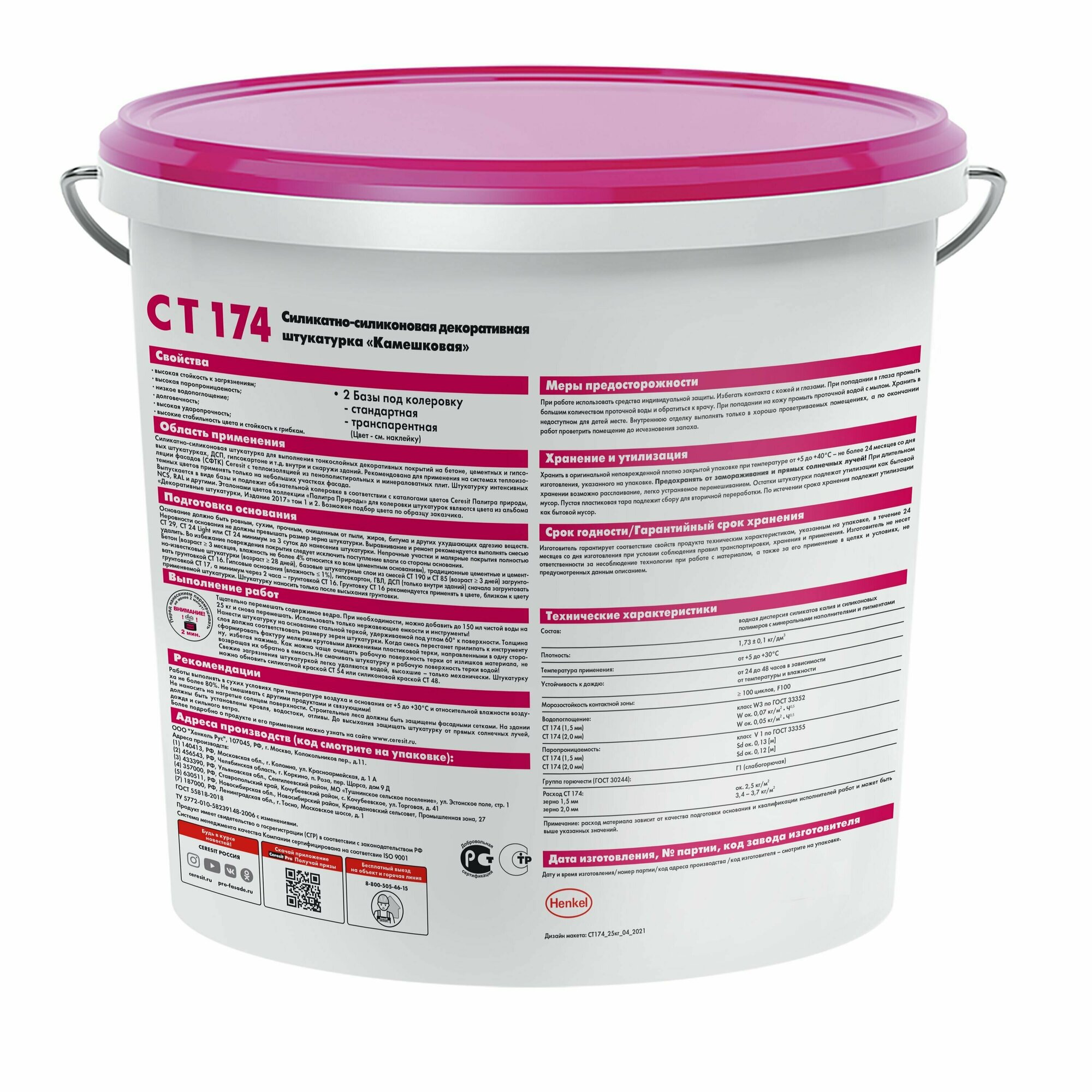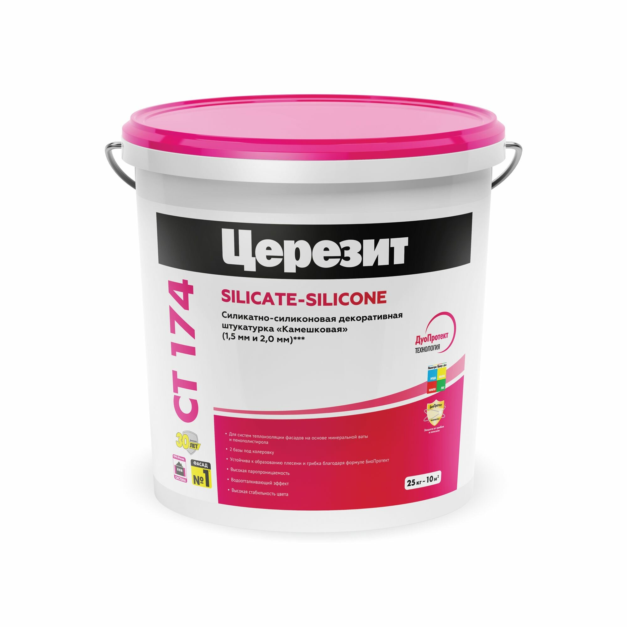 Декоративная штукатурка Церезит (Ceresit) CT 174, силикатно-силиконовая, камешковая, 2 мм, 25 кг