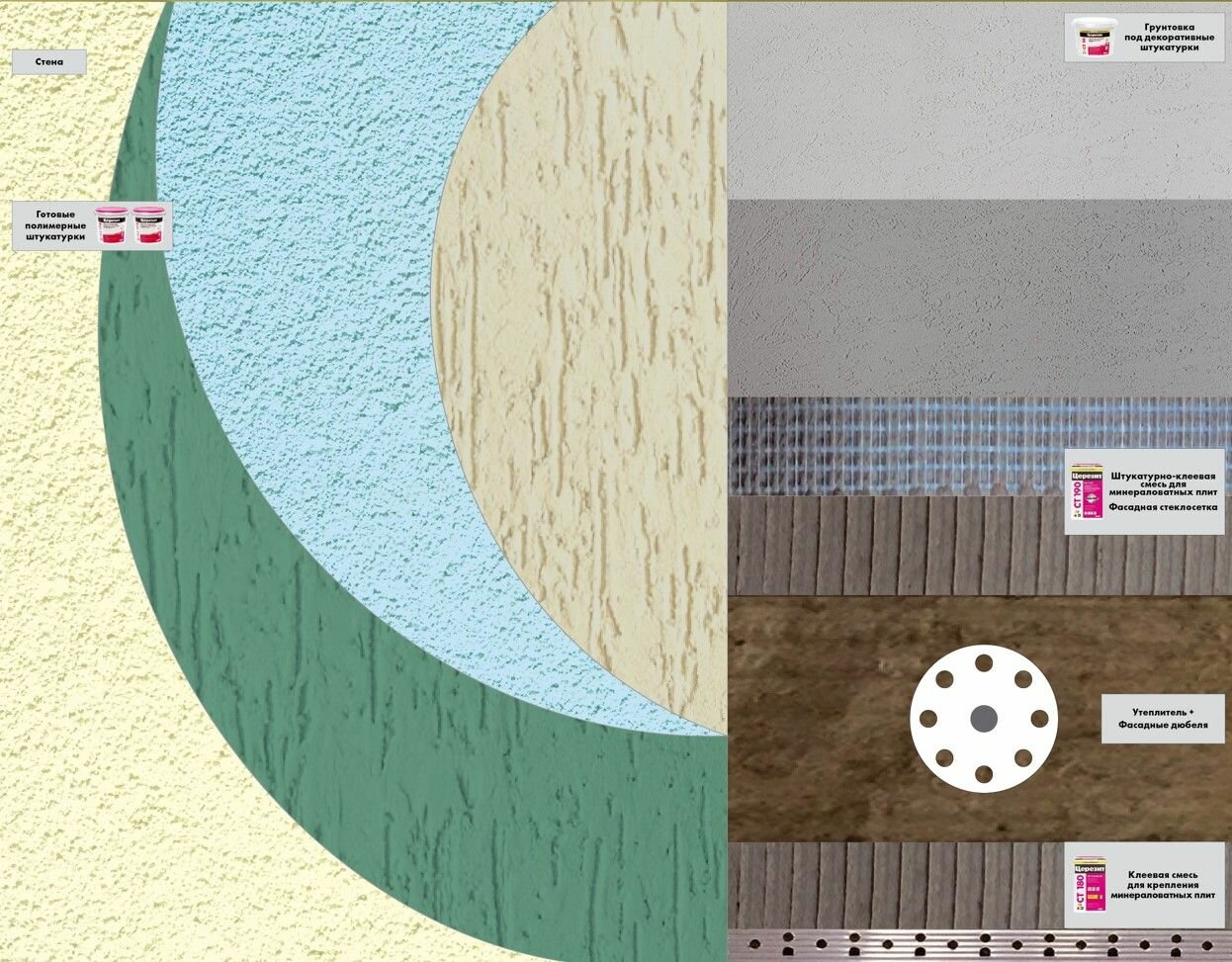 | Особенности | влагостойкий / для подготовленных поверхностей / колеруется / морозостойкий / паропроницаемая / теплоизоляционная / фасадный |