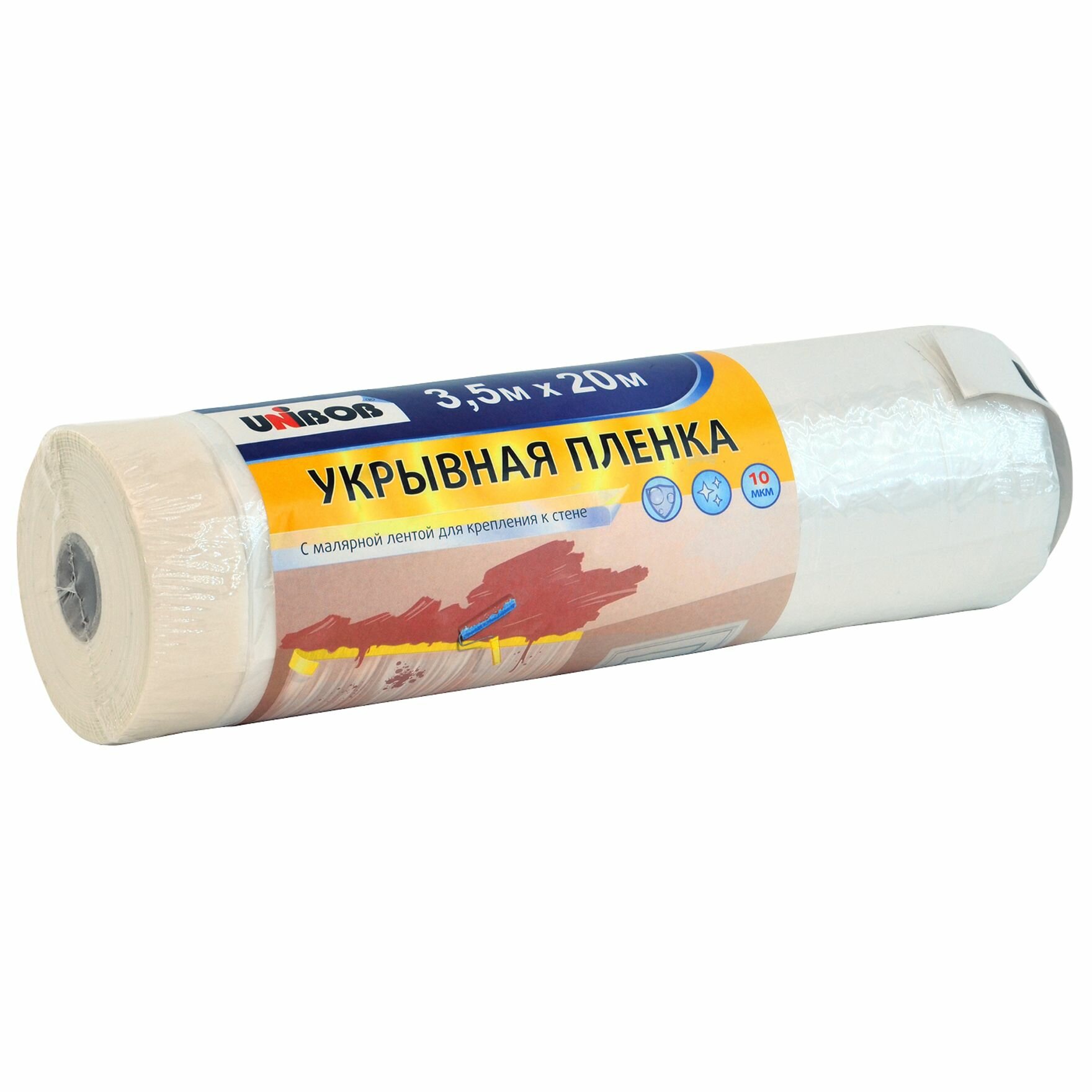 Плёнка укрывная для ремонта защитная с малярной лентой UNIBOB 3,5 м X 20 м, 10 мкм, 1шт