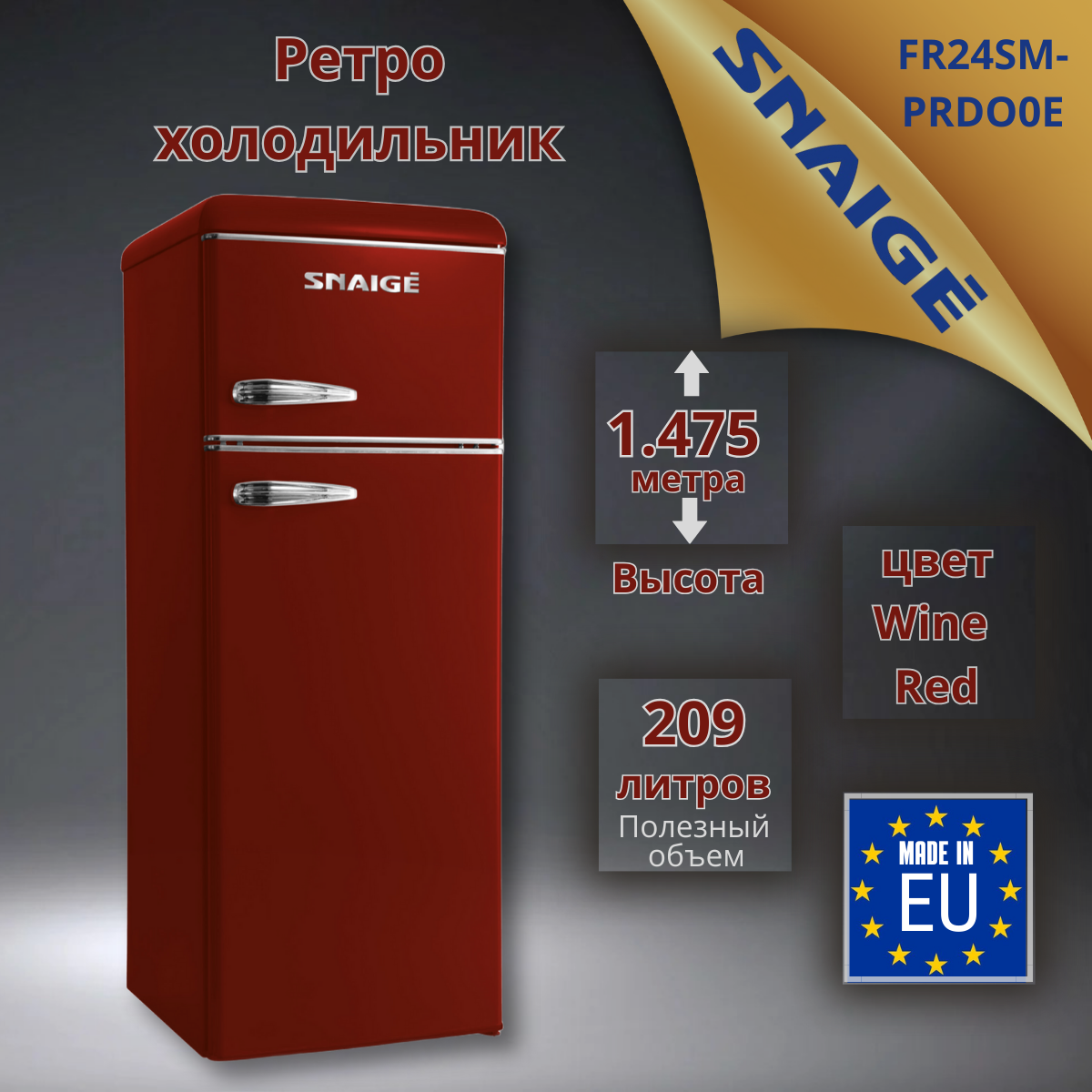 Купить Ретро холодильник Snaige FR24SM-PRDO0E бордовый высотой 147.5 см и морозильником сверху