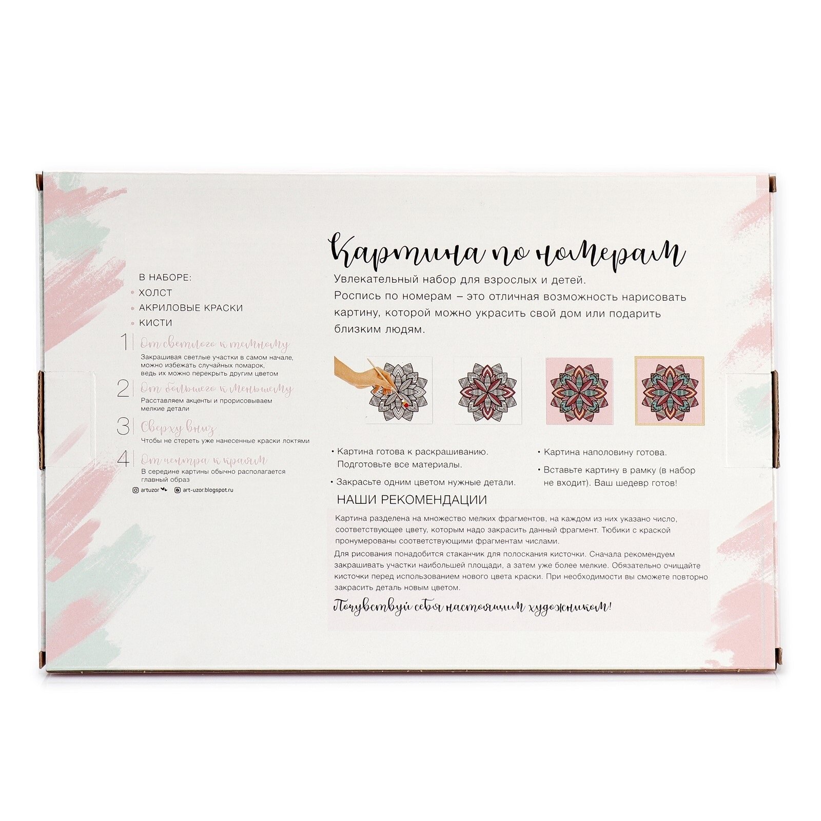 | Комплектация | холст на подрамнике, акриловые краски, кисть |