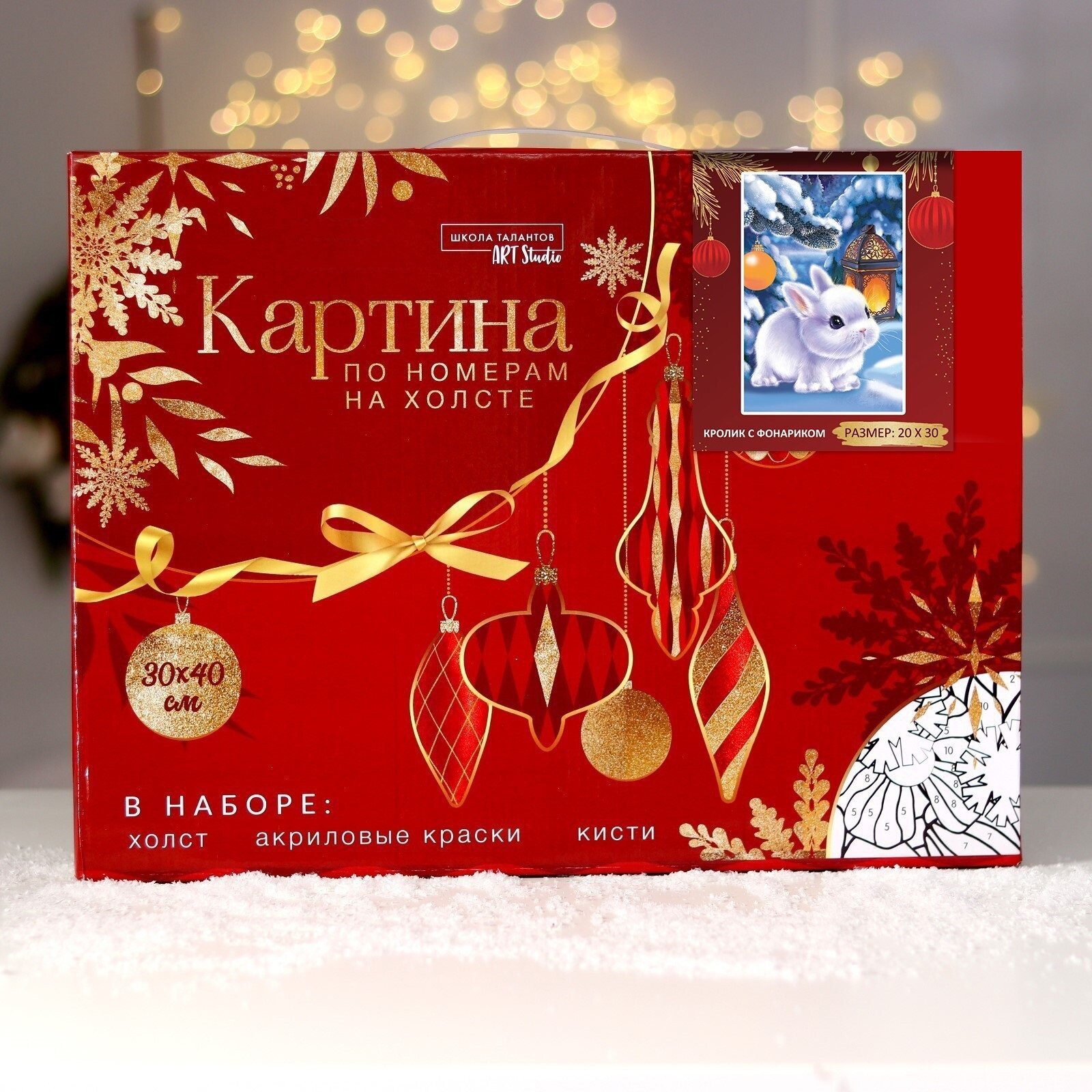 Купить Картина по номерам на холсте с подрамником "Кролик с фонариком" 20х30 см