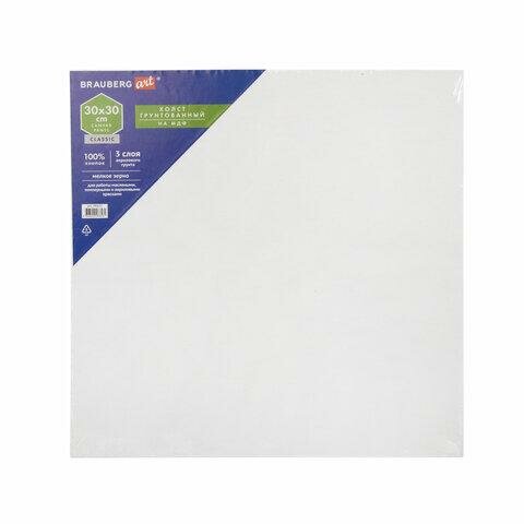 Купить Холст на картоне, 30х30 см, грунтованный, хлопок, мелкое зерно, BRAUBERG ART CLASSIC, 191672