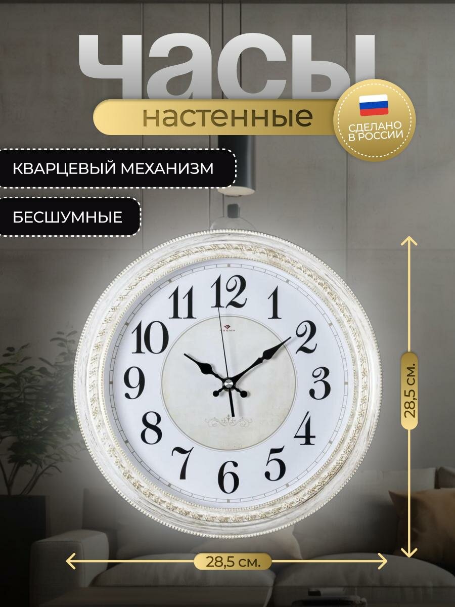 Часы настенные бесшумные Рубин, D 28,5 см, белые с золотом, "Классика" интересное: