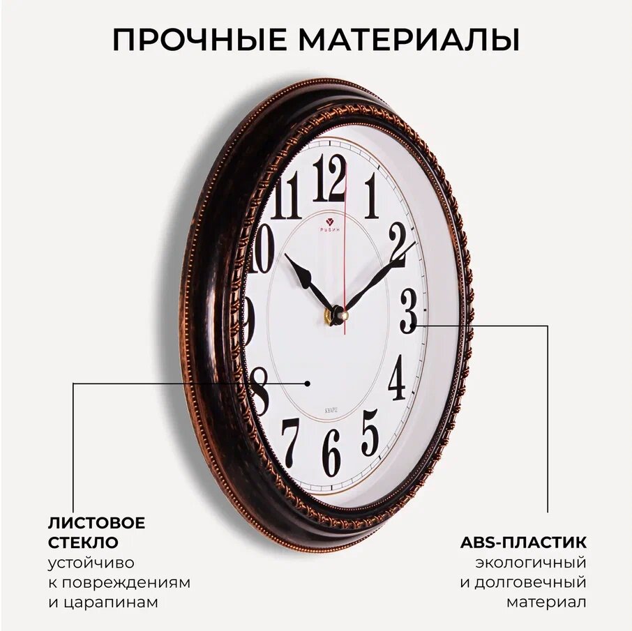 Часы настенные Рубин 2950-002, кварцевые, круглые, пластик, коричневые