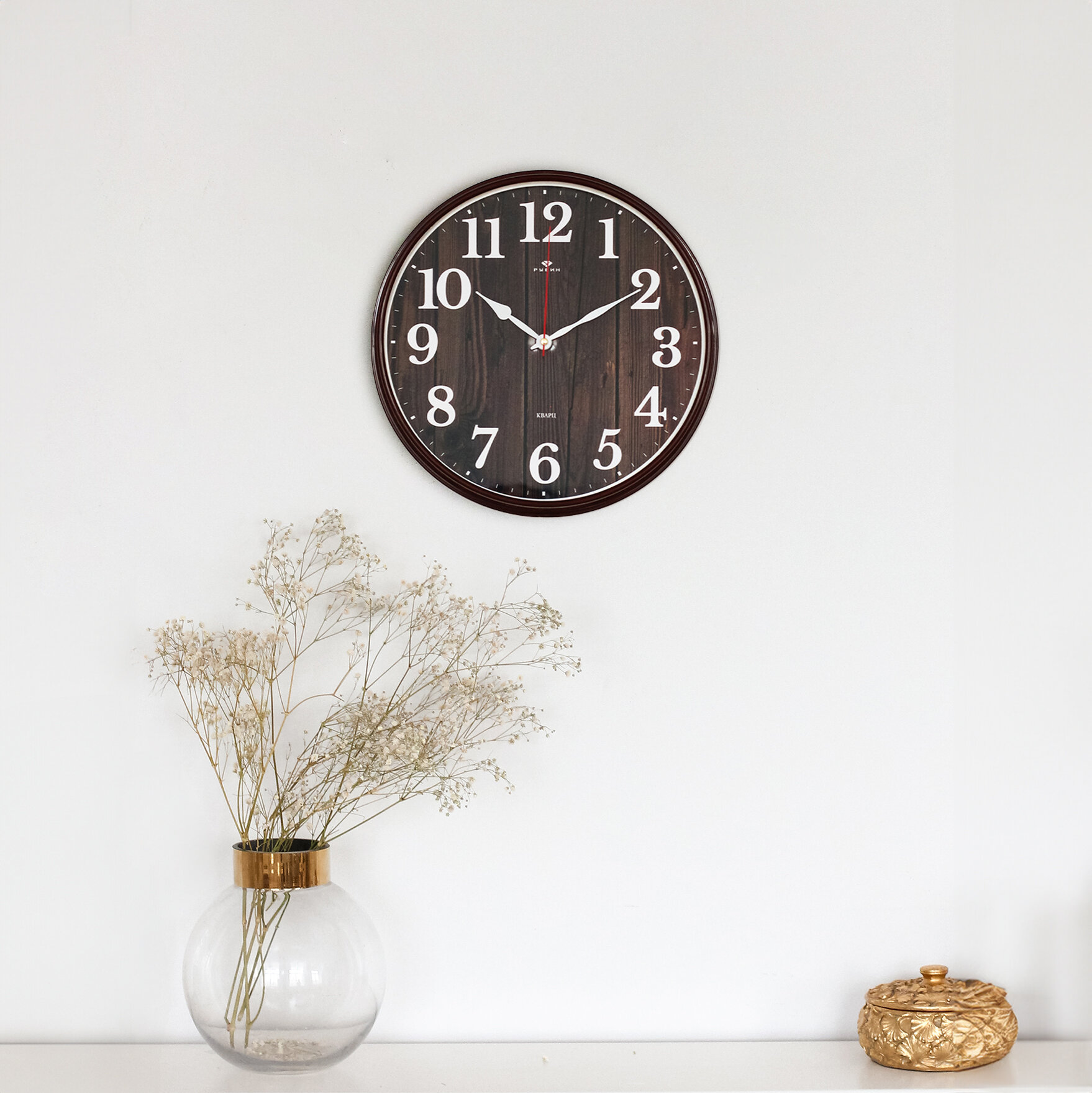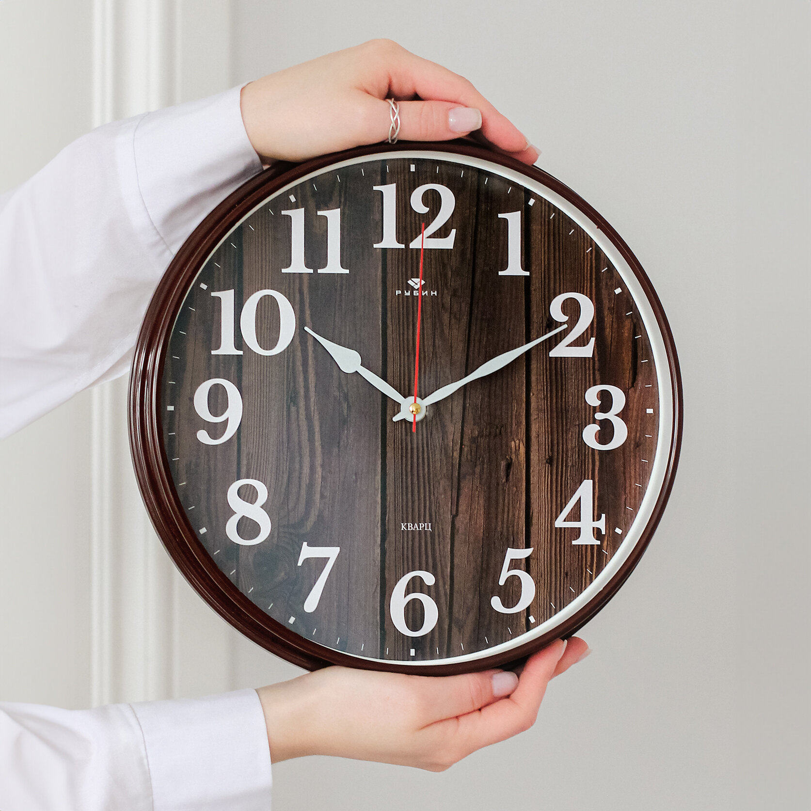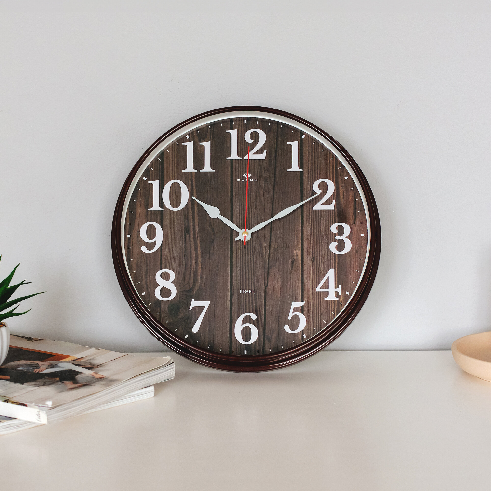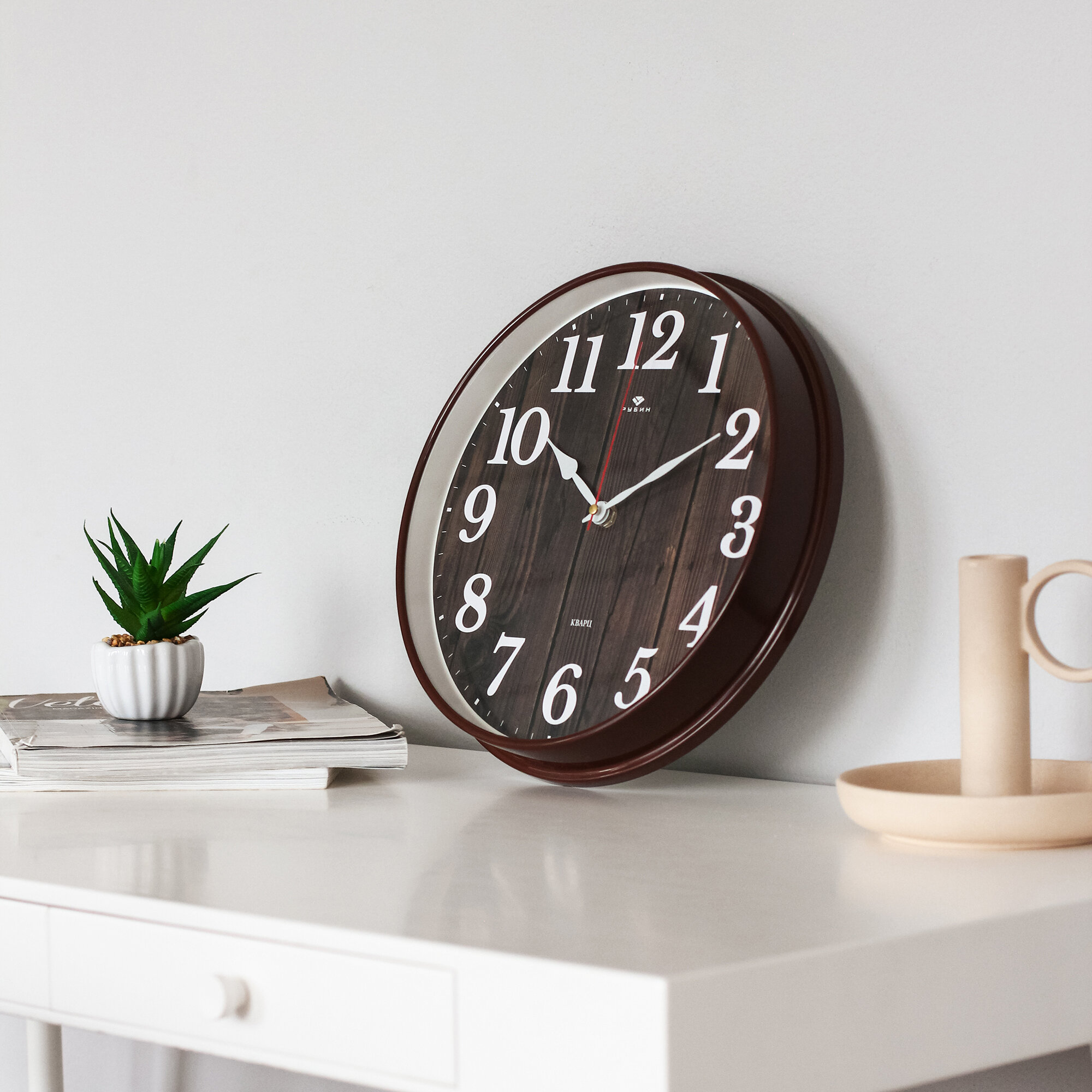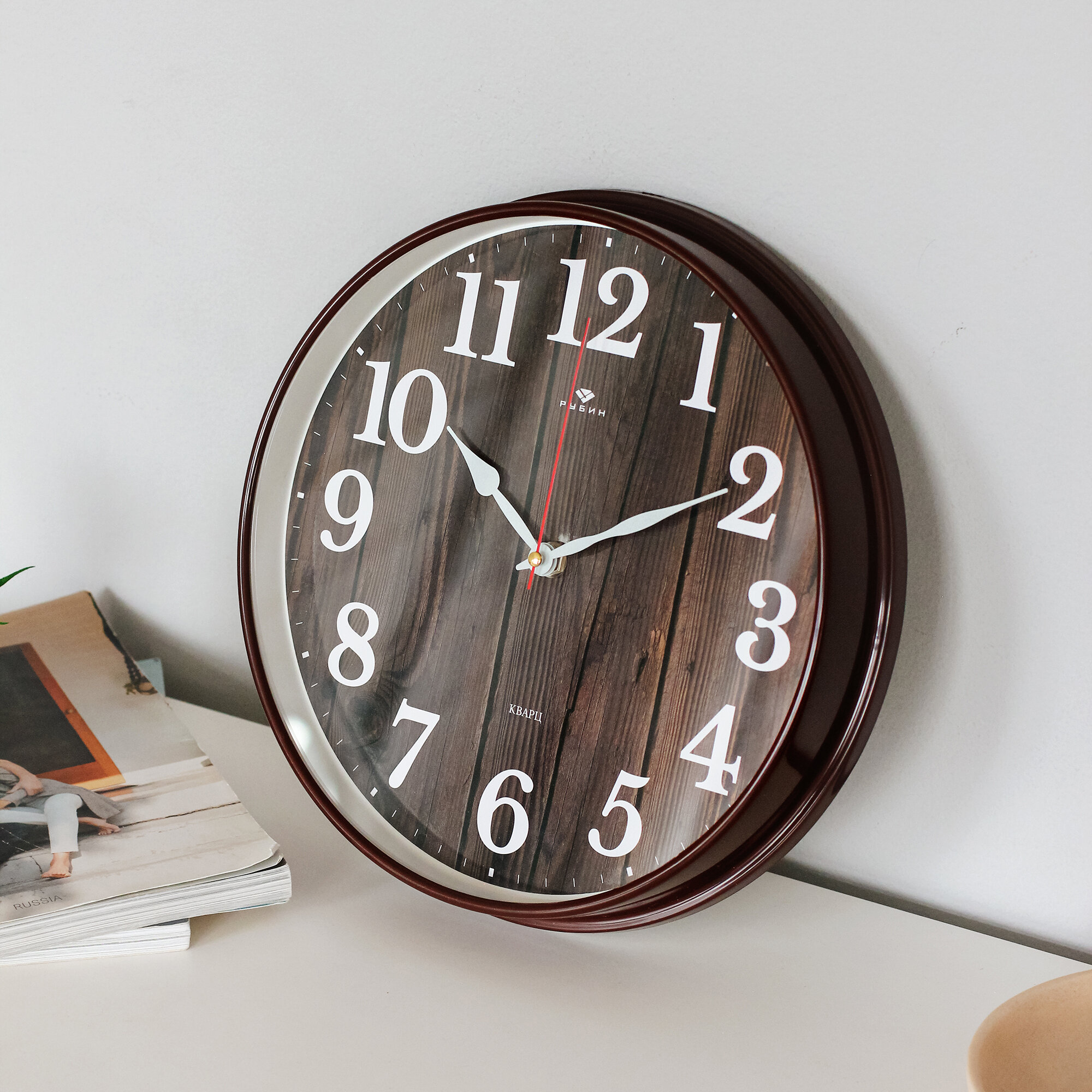 Настенные часы Рубин Эко, кварцевые, круглые, коричневые, пластик, 29см