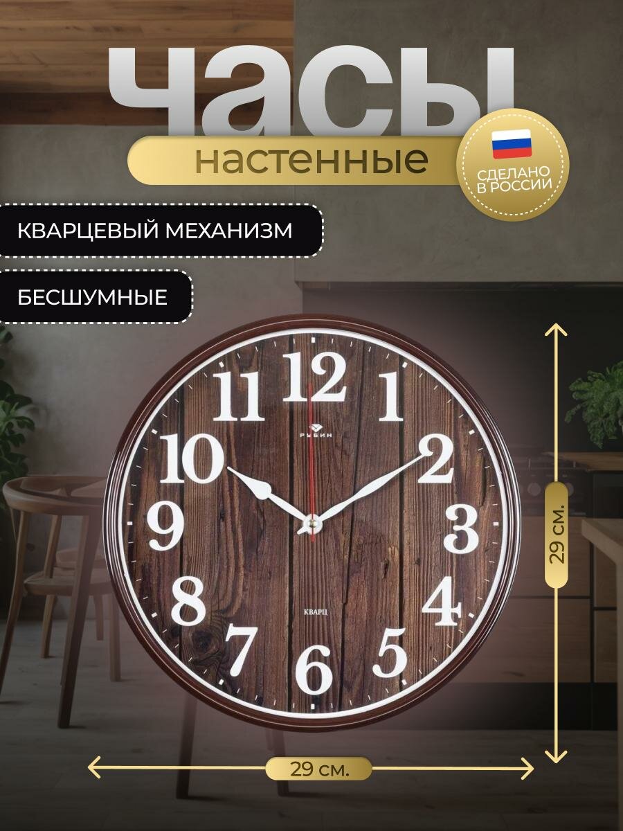 Часы настенные Рубин 2950-002, кварцевые, круглые, пластик, коричневые