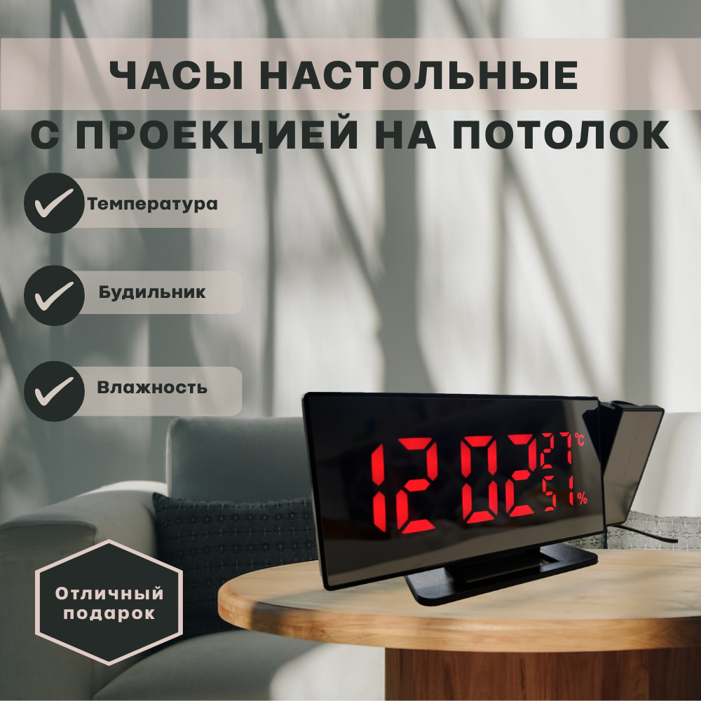 Часы настольные электронные с проекцией на потолок, проекционные часы с красной подсветкой, цифровые LED часы-будильник интересное: