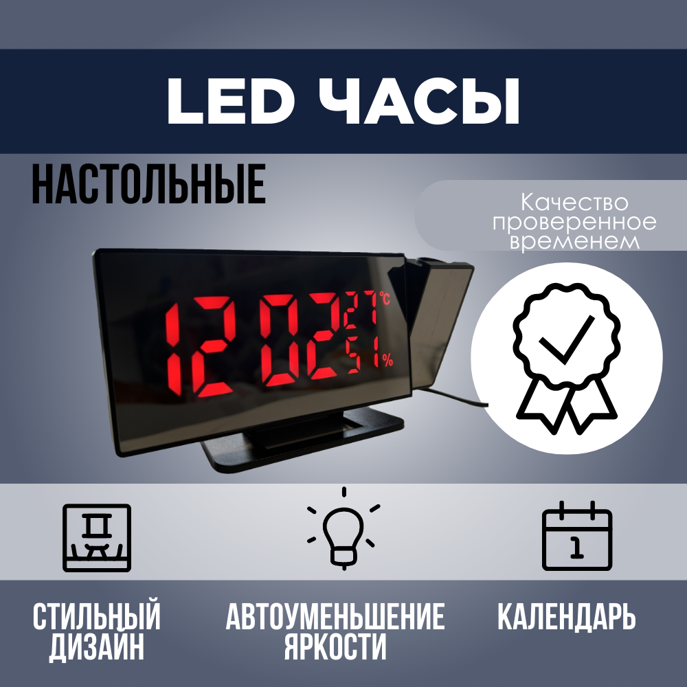 | Комплектация | Часы настольные электронные с проекцией на потолок, проекционные часы, цифровые LED часы-будильник, USB-кабель, инструкция |