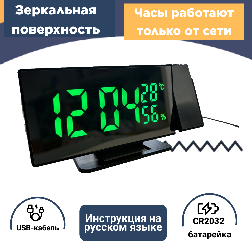Часы настольные электронные с проекцией на потолок, проекционные часы с зеленой подсветкой, цифровые LED часы-будильник интересное: