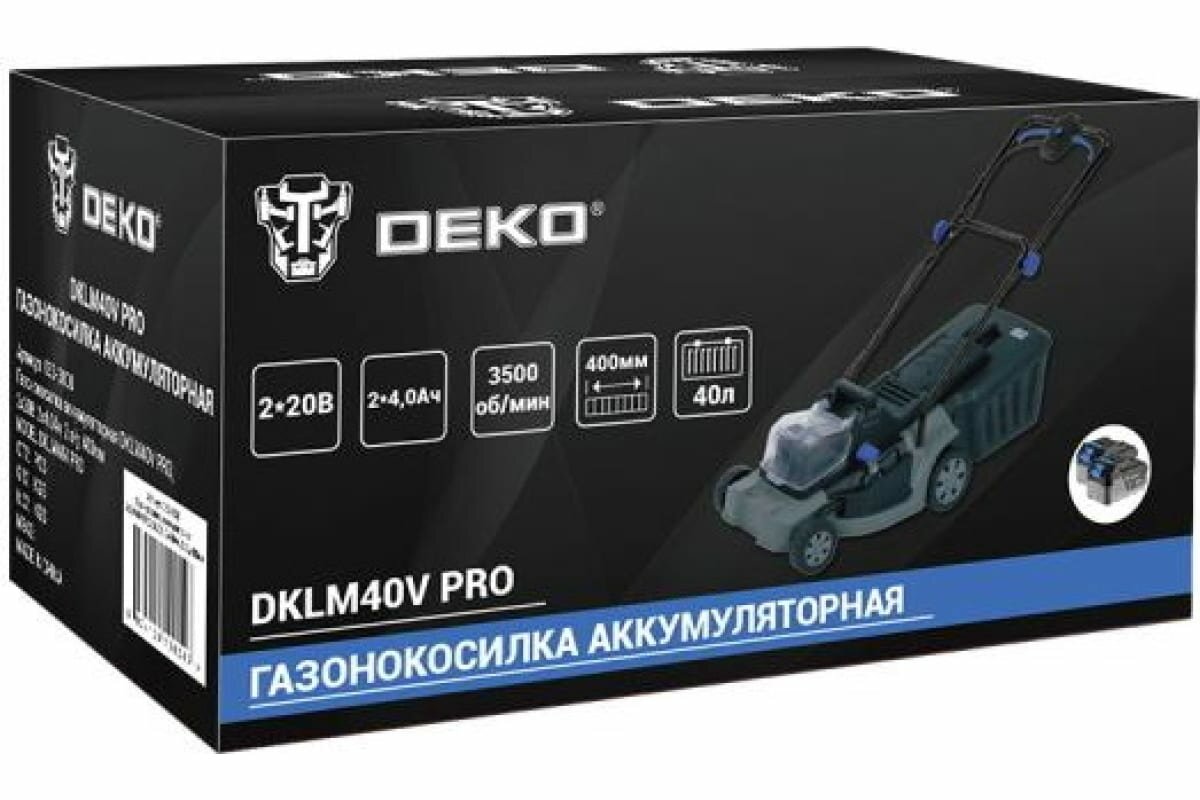 Газонокосилка аккумуляторная DEKO DKLM40V PRO, 2х20В, 2x4.0Aч, 2 з/у, 400мм 063-3008