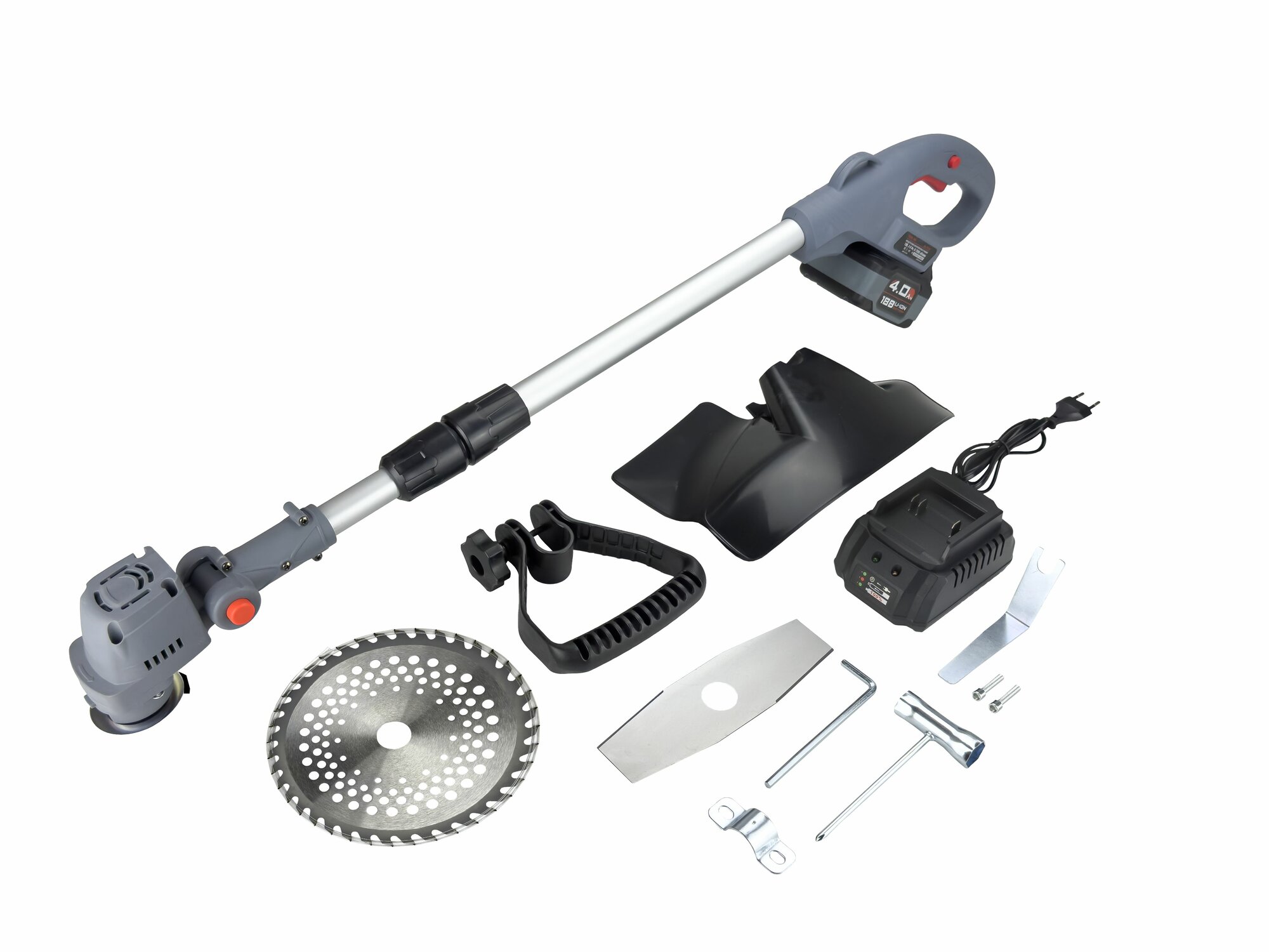 | Особенности | Небольшой вес делает работу с триммером комфортной и безопасной, Li-lon аккумулятор 4.0 Ач с функцией поддержания мощности и быстрой зарядки, удобная дополнительная рукоятка, регулировка штанги. |