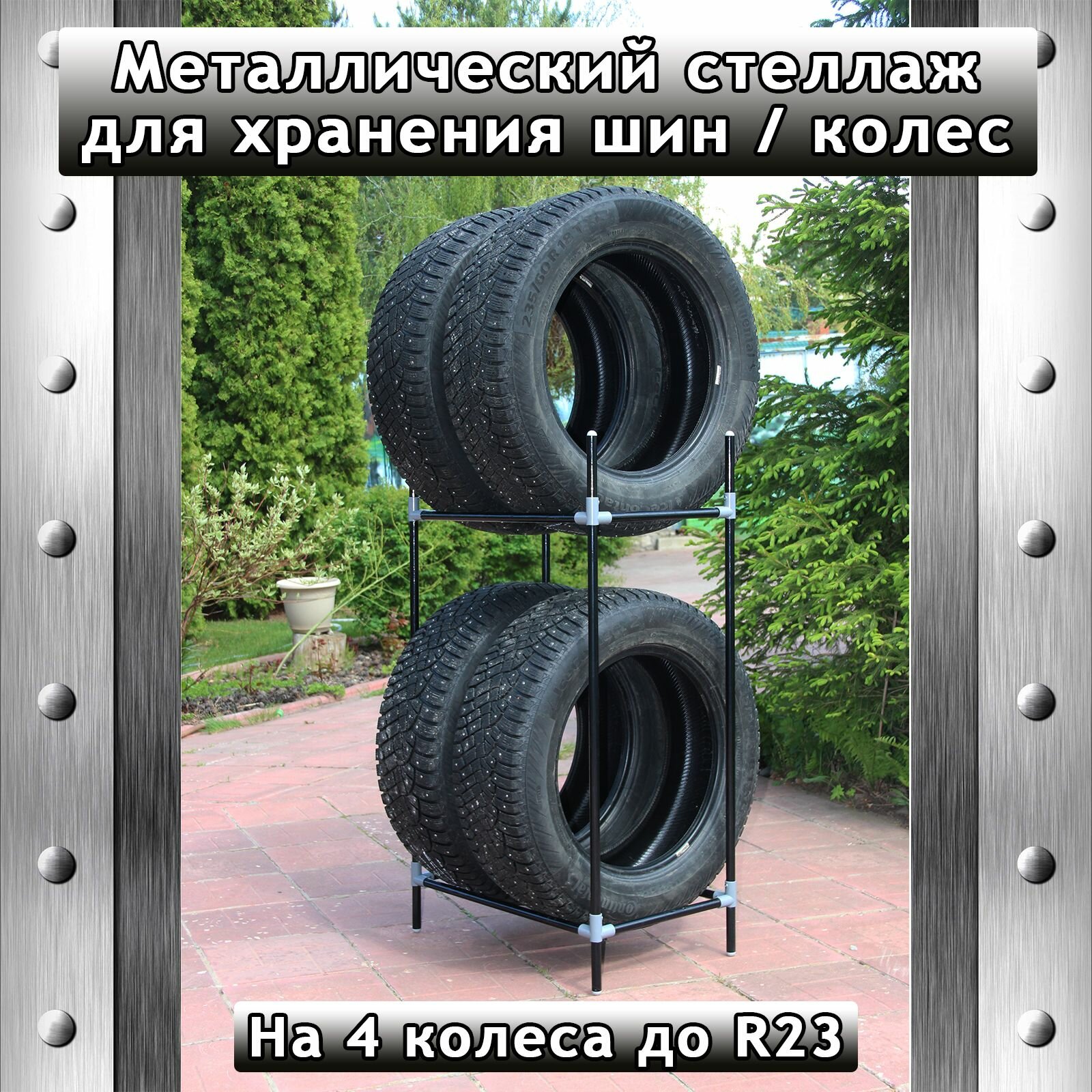 Купить Cтеллаж металлический для хранения шин и колес. На 4 колеса до R23. Цвет: Черный