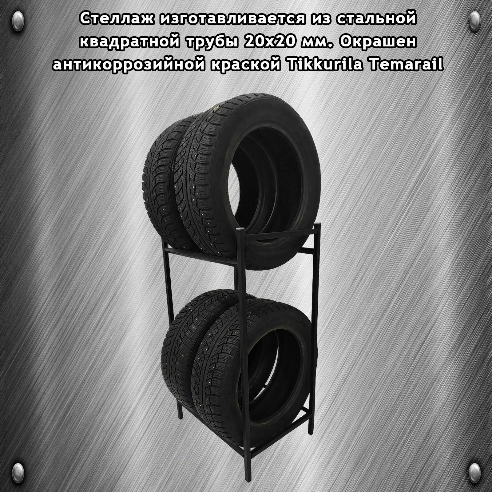 Металлический стеллаж для хранения шин и колес. На 4 колеса до R19. Цвет: Черный