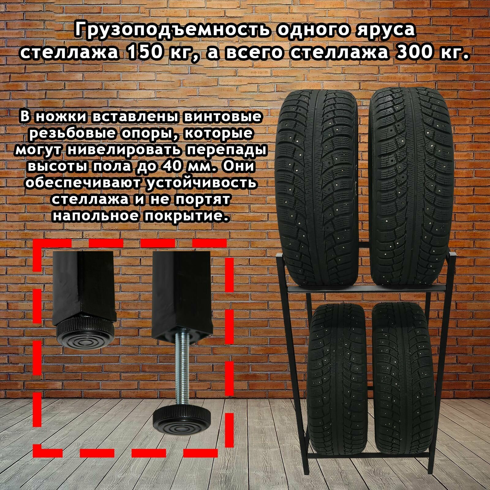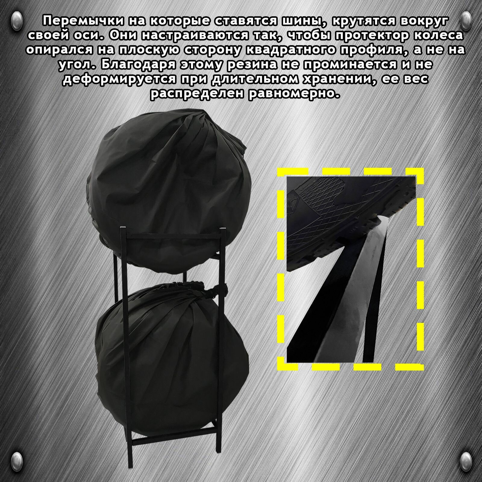 СохранитьСтеллаж металлический для хранения шин, колес. На 4 колеса до R19. Цвет - Чёрный. интересное: