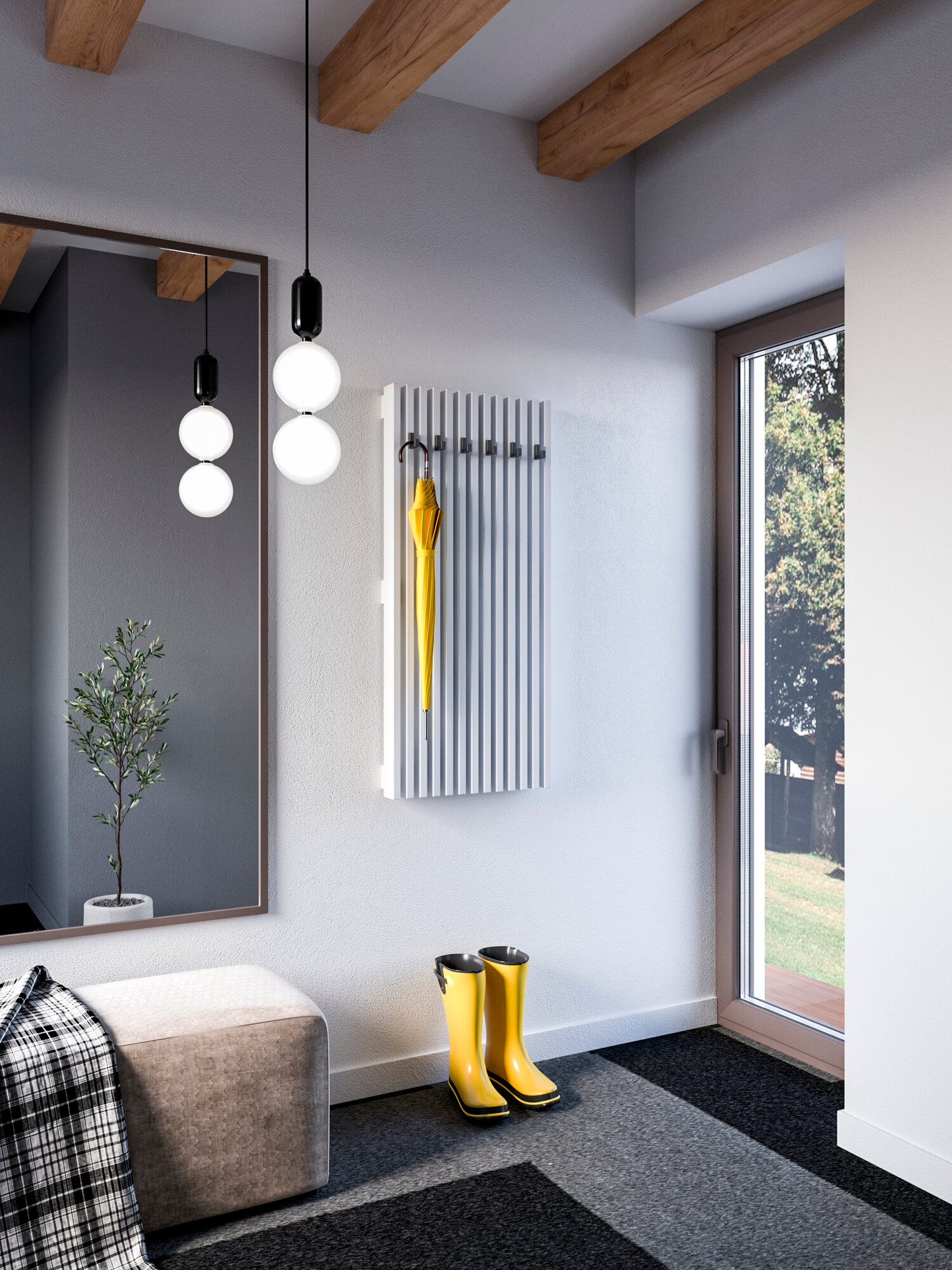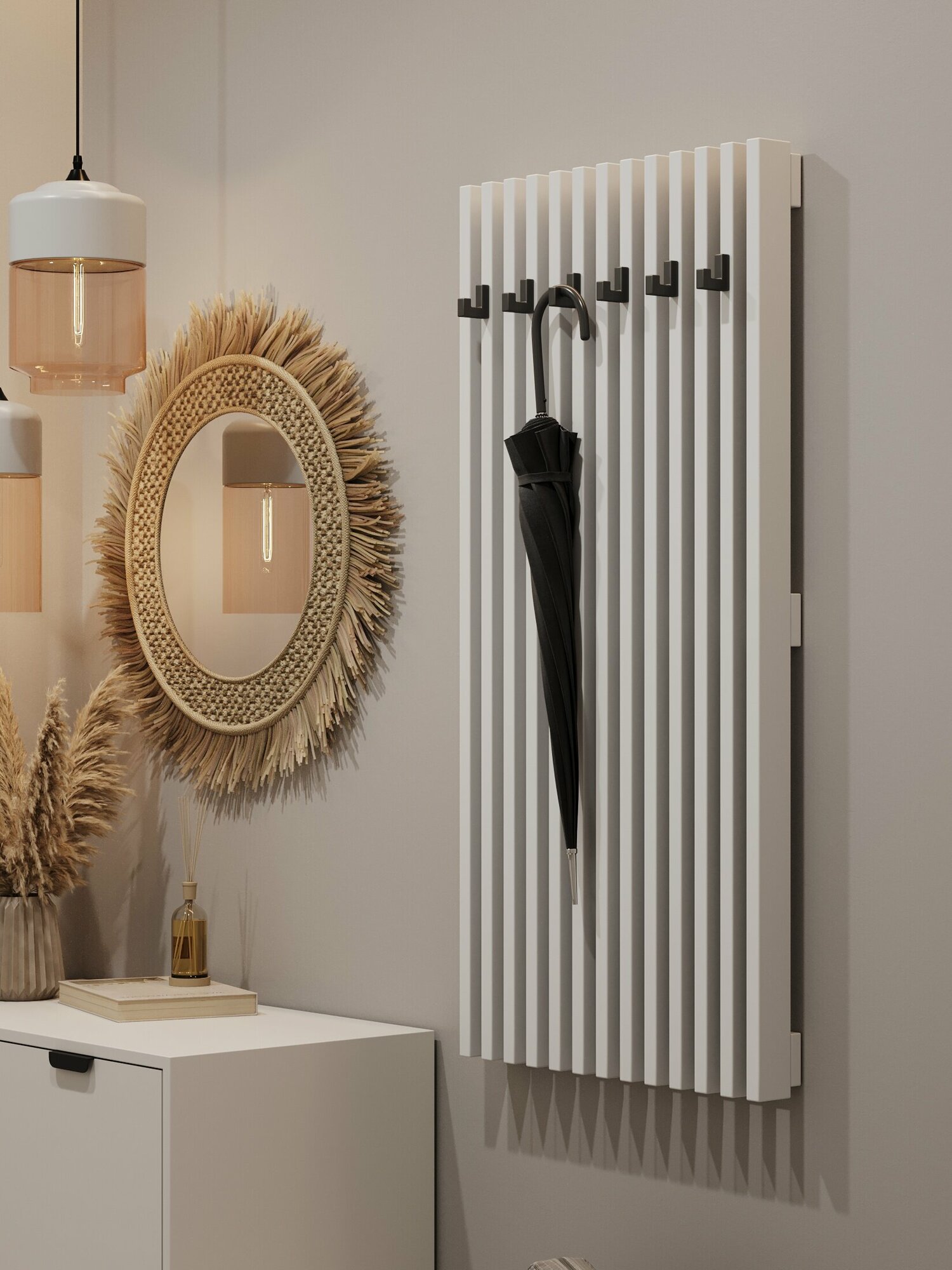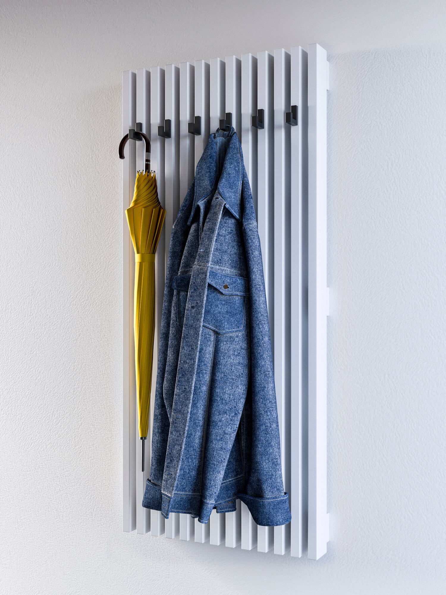 Купить Вешалка настенная в прихожую Мебельно "Стиль" цвет белый - стильная белая настенная вешалка для одежды с рейками