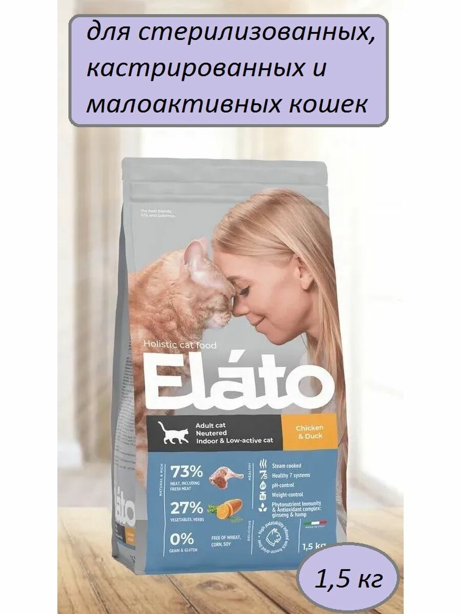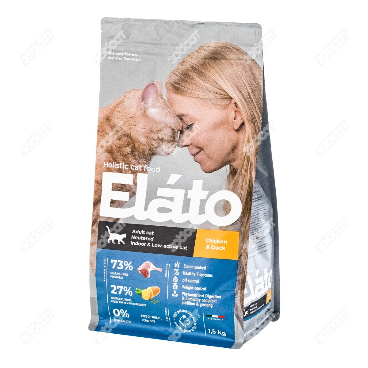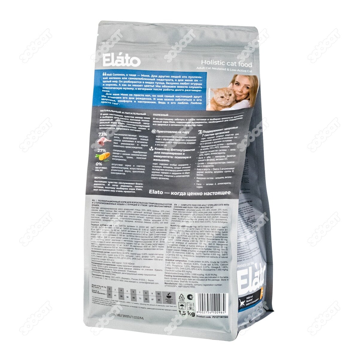 Купить Elato Holistic корм для кастрированных котов и стерилизованных кошек, с курицей и уткой 1,5 кг