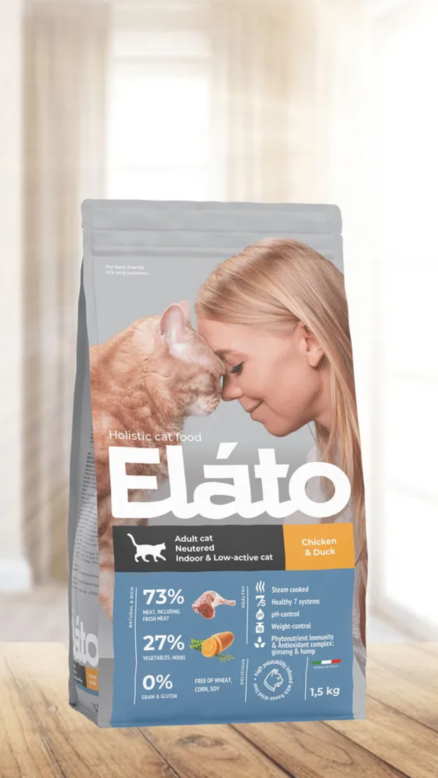Сухой корм Elato Holistic для кастрированных котов, стерилизованных и малоактивных кошек, 1,5кг