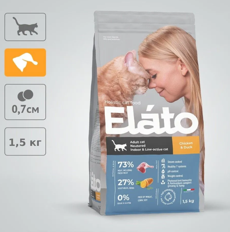 СохранитьElato Holistic корм для кастрированных котов и стерилизованных кошек, с курицей и уткой 1,5 кг интересное: