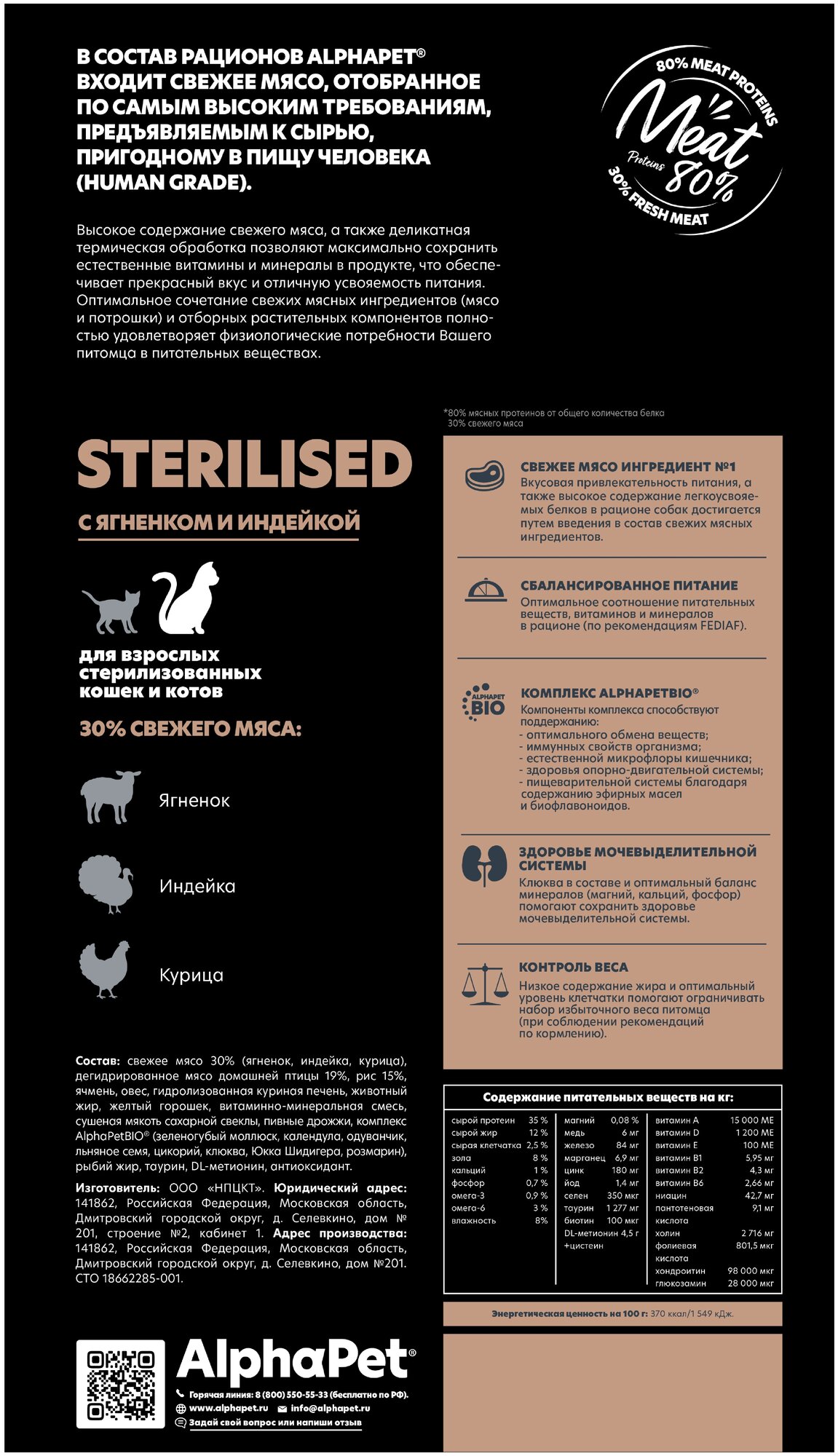 Сухой полнорационный корм AlphaPet (АльфаПет) Superpremium для взрослых стерилизованных кошек и котов, с ягненком и индейкой, 3 кг интересное: