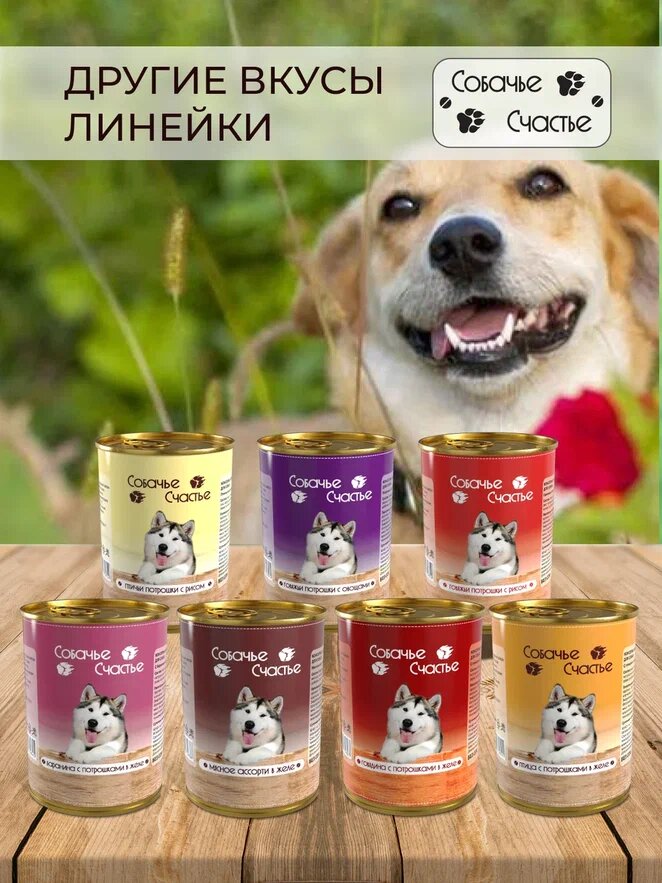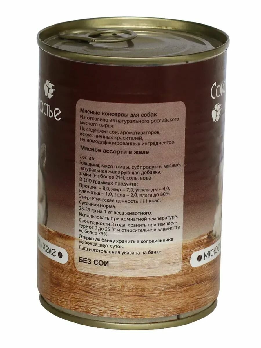 Консервированный корм для собак, Собачье Счастье, мясное ассорти в желе, 750 г, 1 шт.