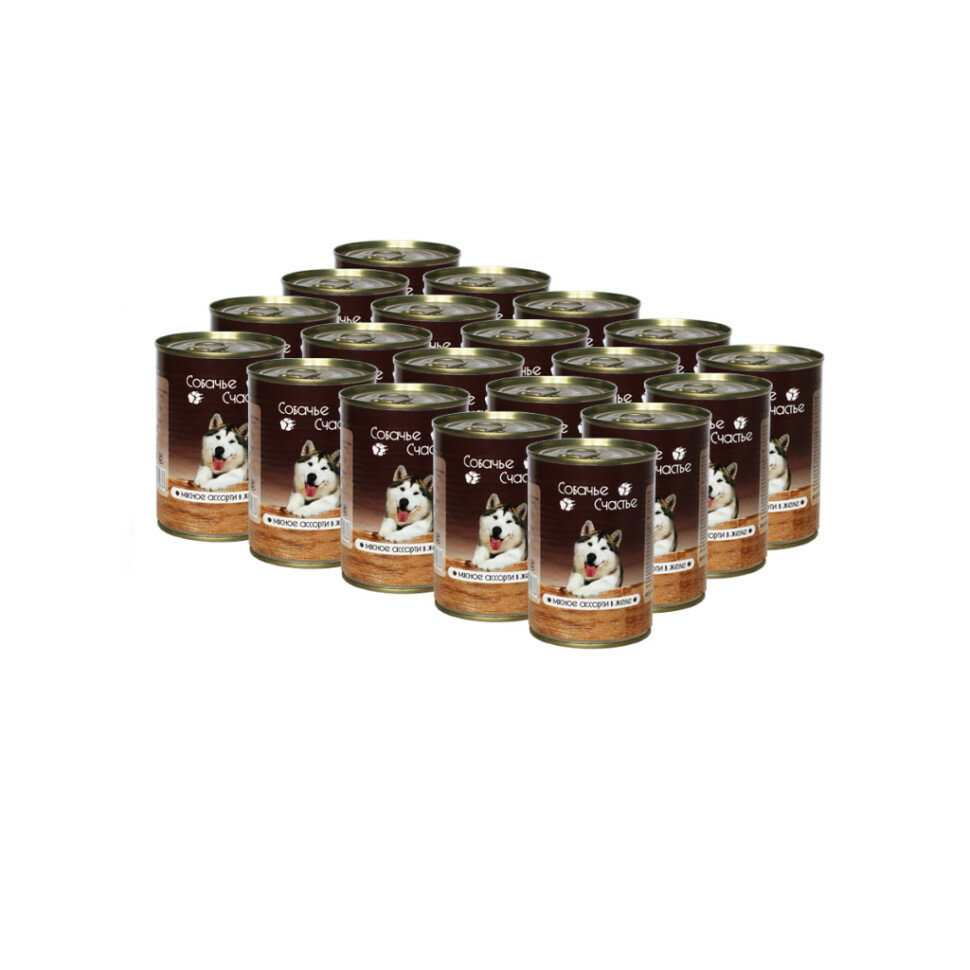 Собачье Счастье Консервированный корм для собак Мясное ассорти в желе, 410 г, 2 шт
