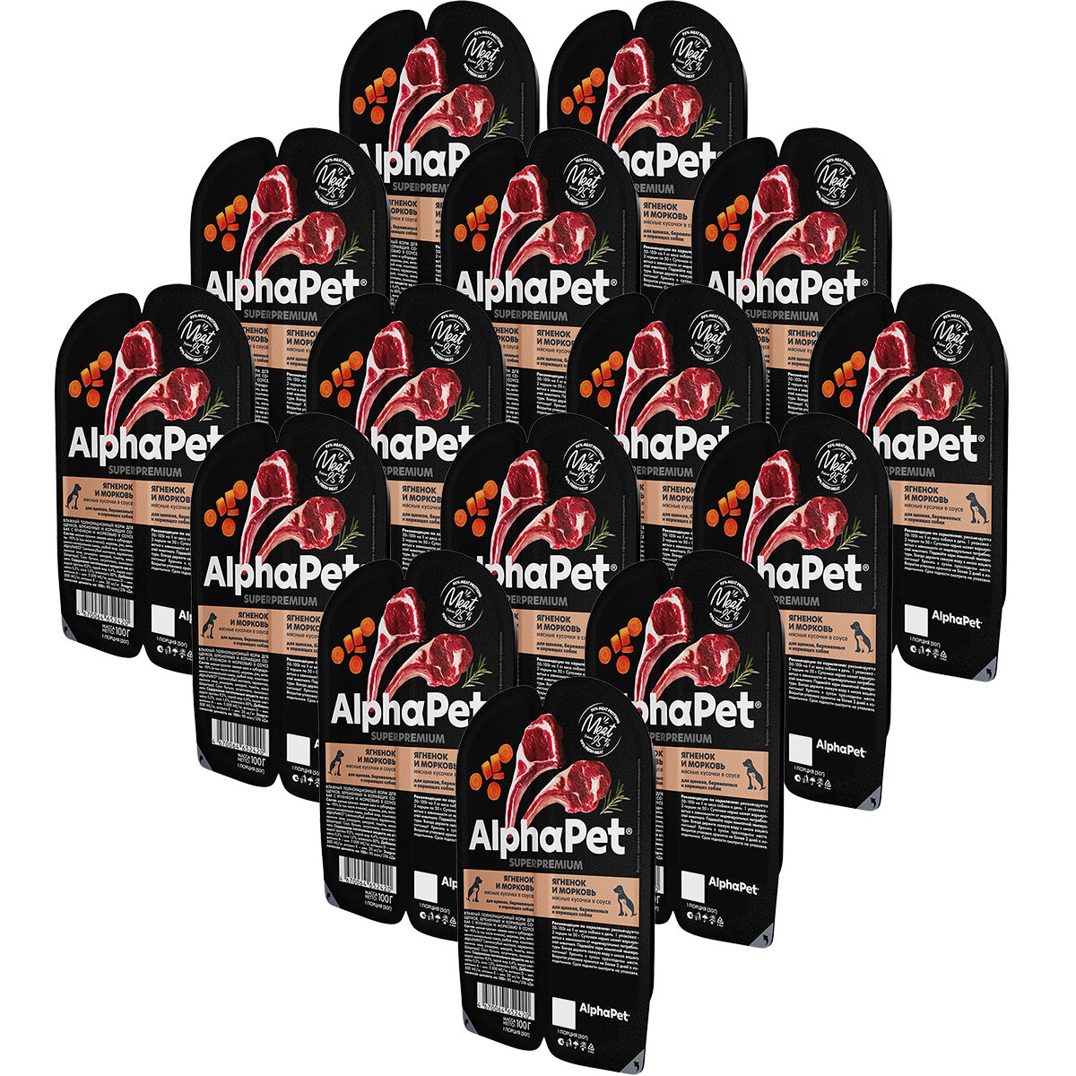 Купить AlphaPet Superpremium Влажный корм для щенков, беременных и кормящих собак в соусе, Ягненок и Морковь, 15шт*100г