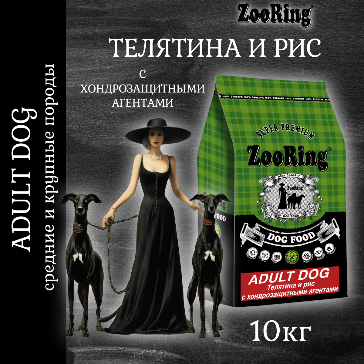 ZOORING ADULT DOG для взрослых собак средних и крупных пород с телятиной и рисом для суставов с хондрозащитными агентами (10 кг)