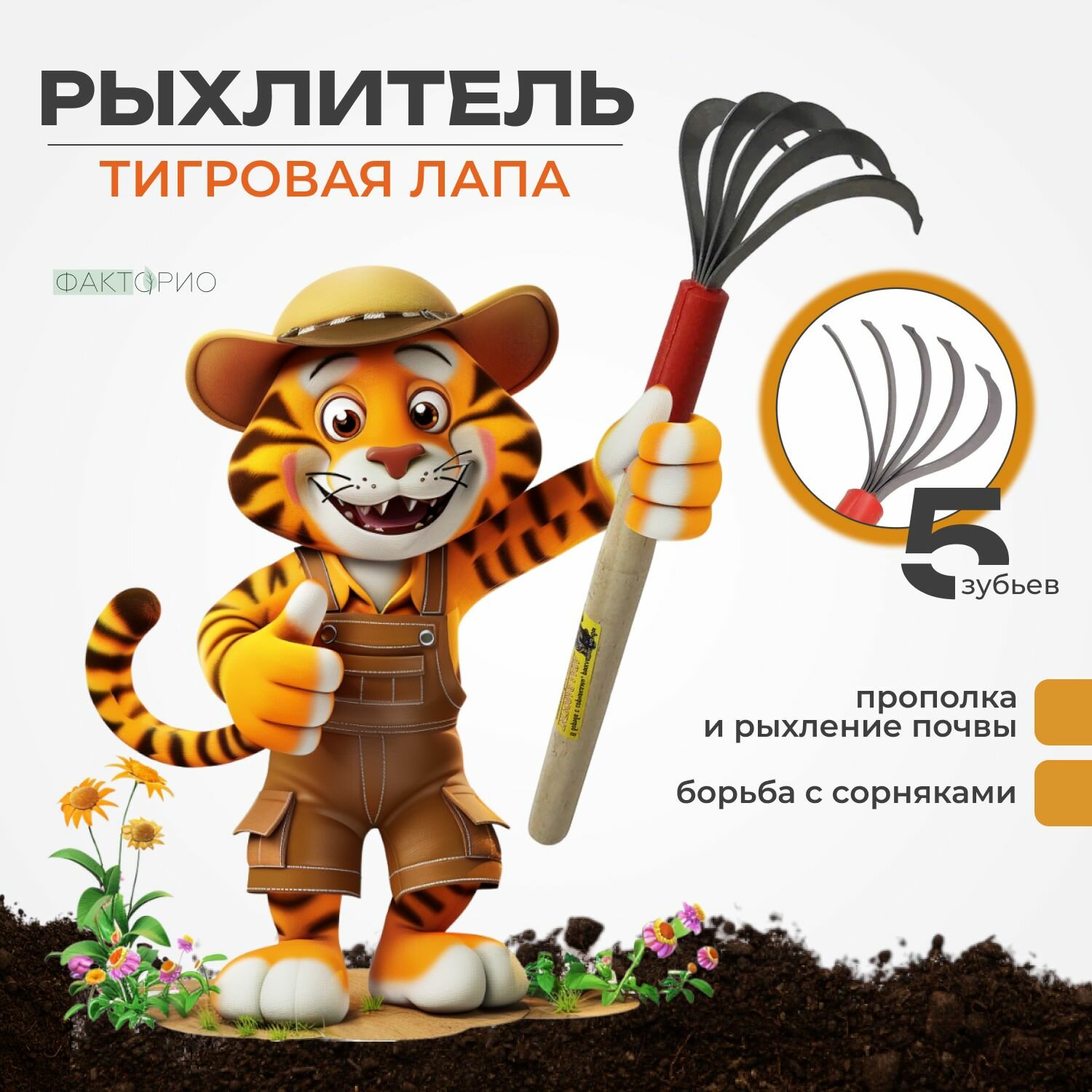 Рыхлитель 5 зубьев Тигровая лапа деревянная ручка 07257 интересное: