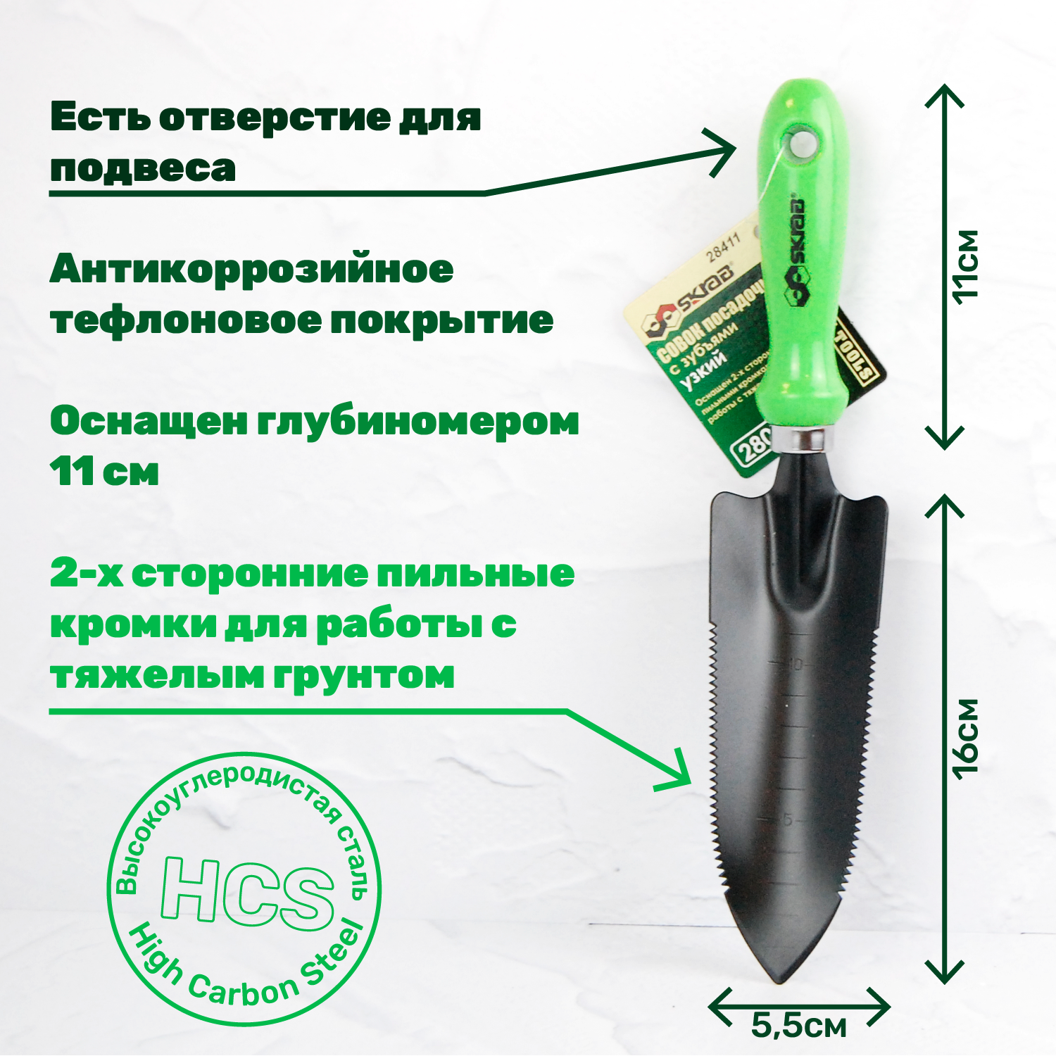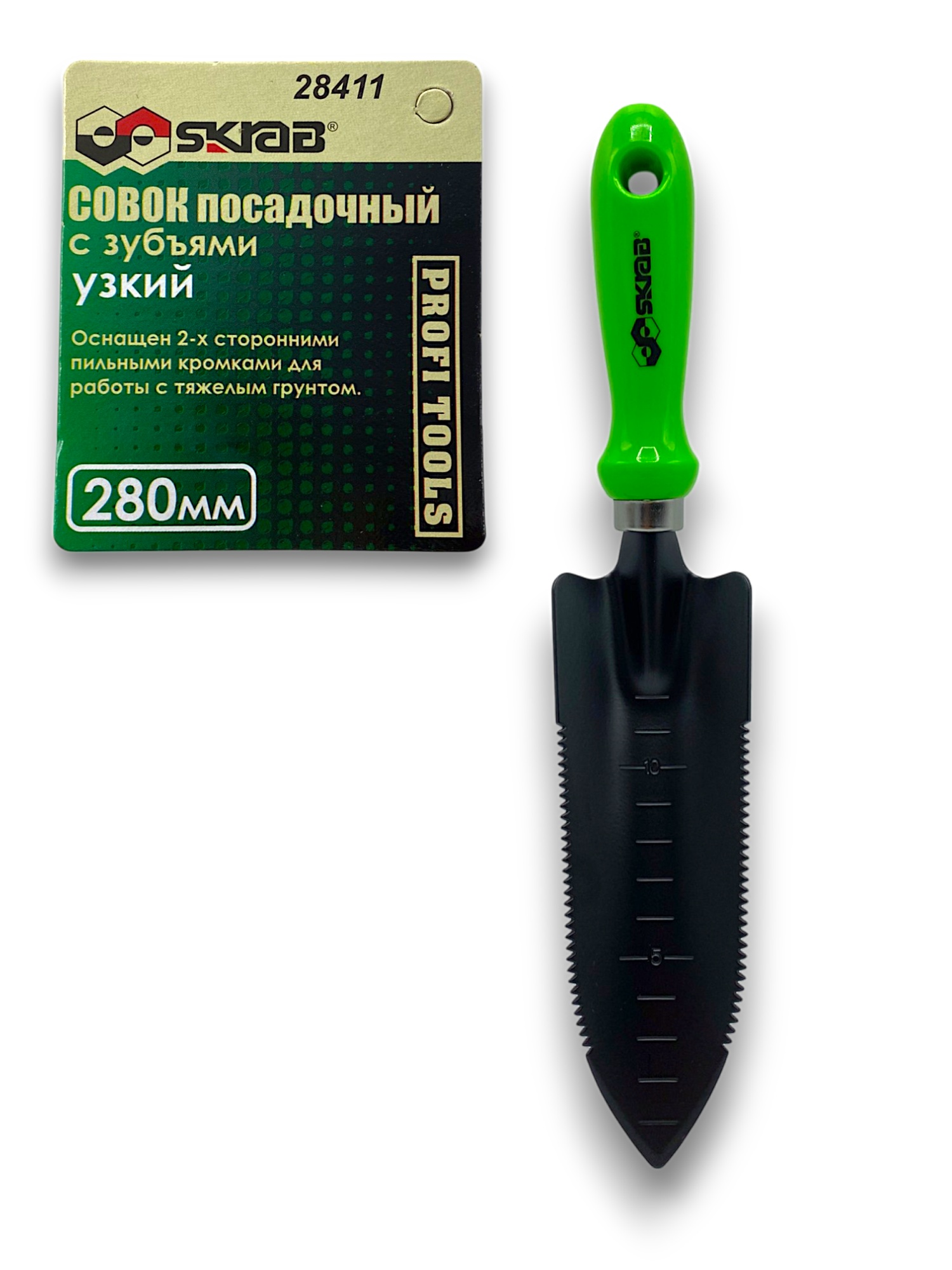 Совок посадочный узкий с зубьями 280мм (Skrab) (Артикул : 28411) интересное: