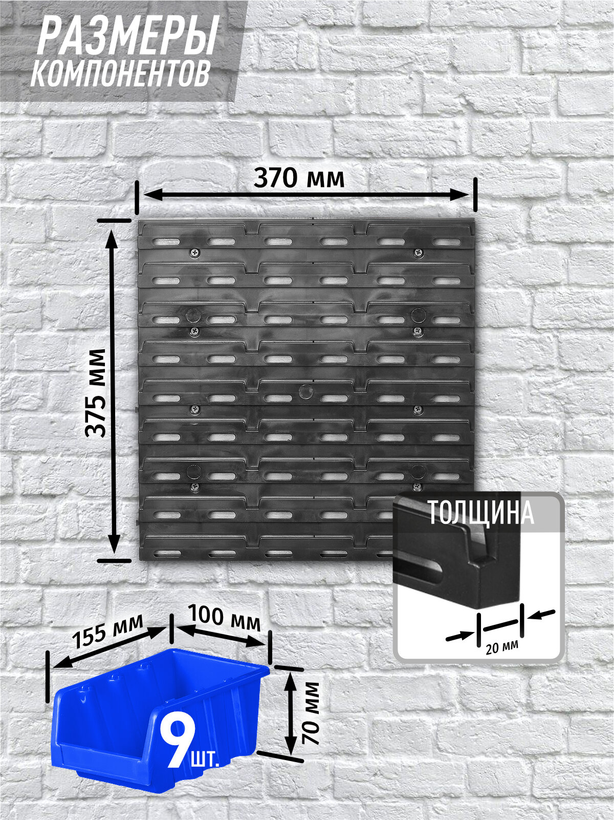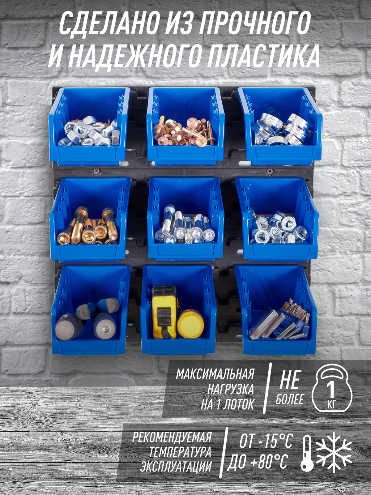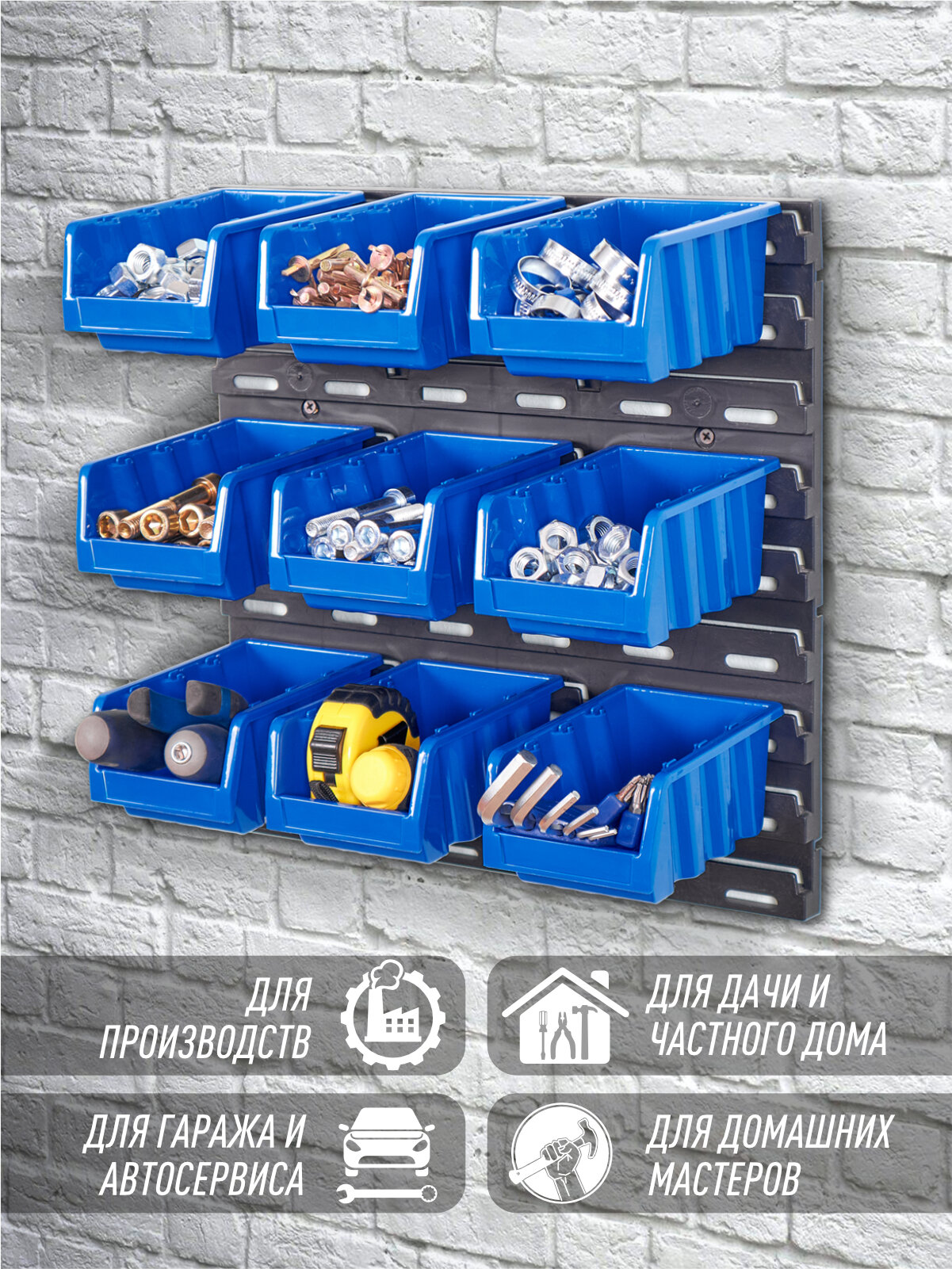СохранитьОрганайзер для метизов на стену, 9 лотков 15,5х10х7 cм, синий/черный, пластиковый, 37х37,5х2 см. интересное: