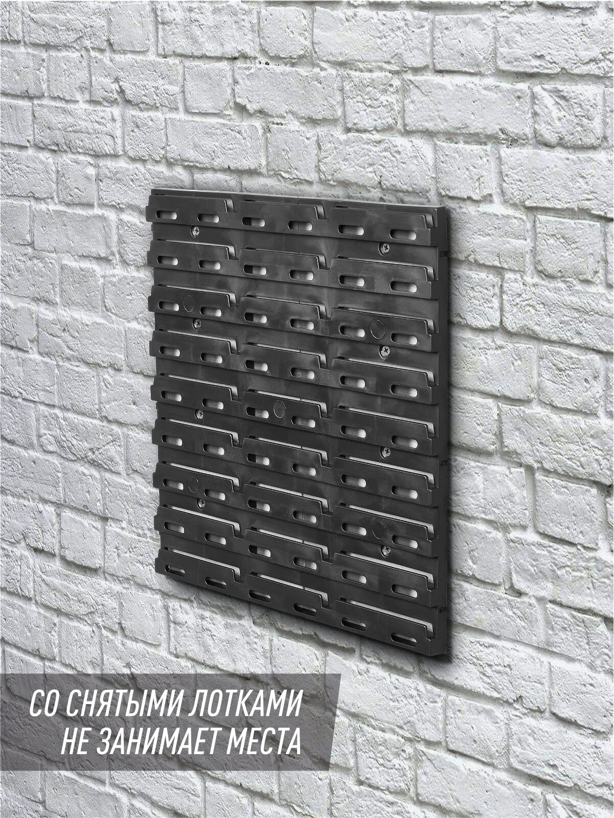 Органайзер для инструментов пластиковый, на стену, лотки 9 шт. 15,5х10х7 см оранжевый, черный, 37х2х37,5х2 см