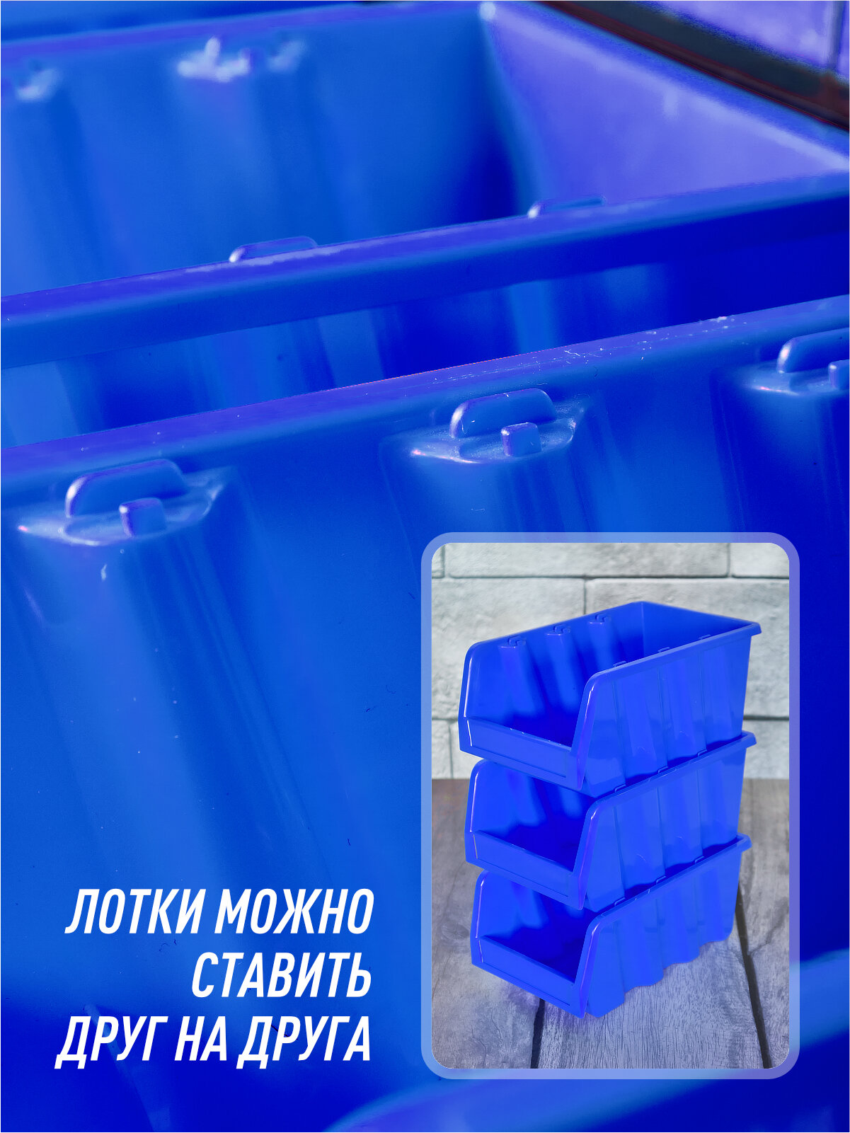 Органайзер пластиковый в гараж с лотками 9 шт 15,5х10х7 см, для хранения метизов, синий, 37х2х37,5х2 см