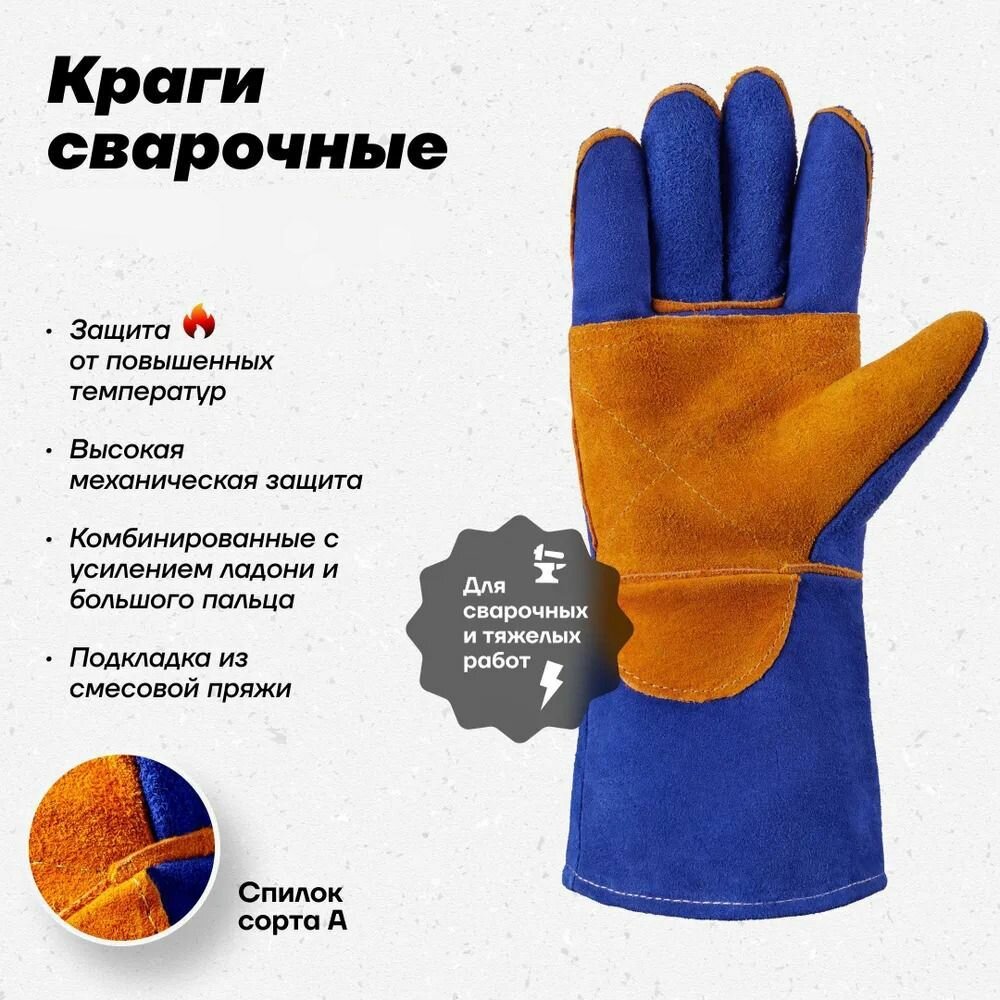 Спилковые пятипалые перчатки краги Фабрика перчаток для защиты рук от теплового воздействия и ожогов во время сварки, монтажных и металлургических работ, 1 пара интересное: