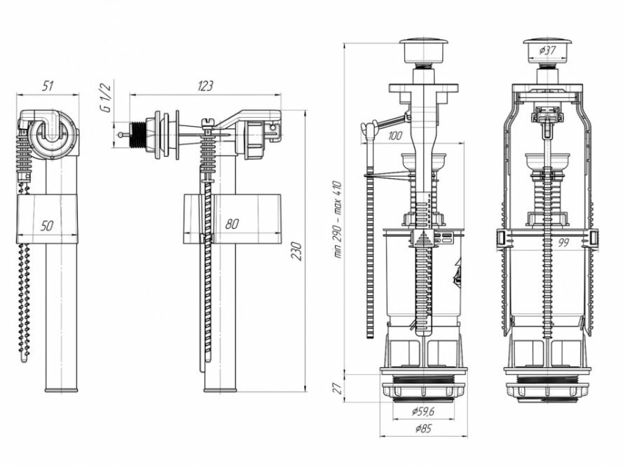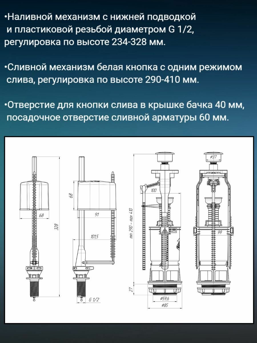 Комплект арматуры АНИ Пласт WC6550 однорежимная нижняя белый интересное: