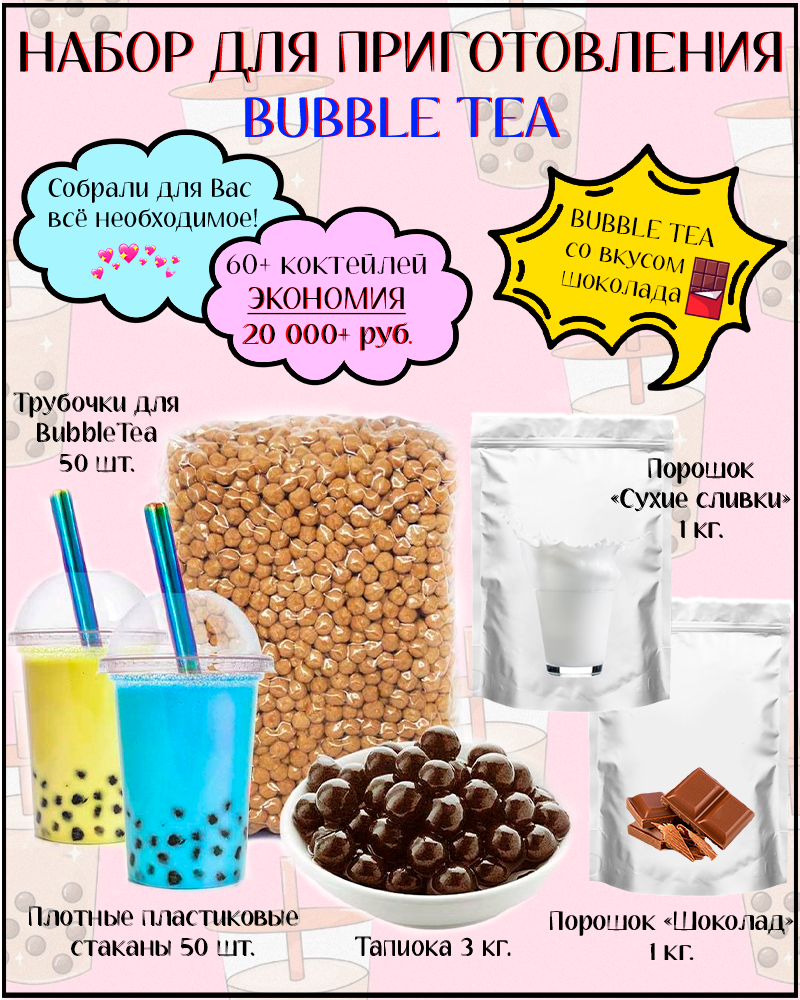 Купить Набор для приготовления Bubble Tea баблти с тапиокой (шоколад)