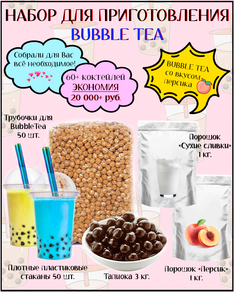Купить Набор для приготовления Bubble Tea баблти с тапиокой (персик)