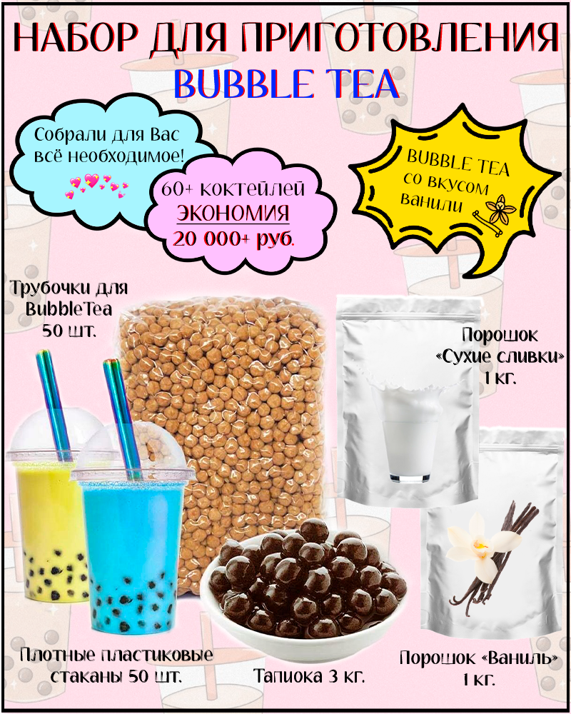 Купить Набор для приготовления Bubble Tea баблти с тапиокой (ваниль)