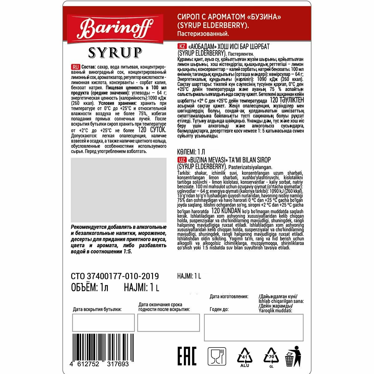 Купить Сироп Barinoff Бузина (для кофе, коктейлей, десертов, лимонада и мороженого), 1л