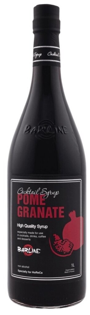 Сироп Barline Гранат (Pome Granate), 1 л, для кофе, чая, коктейлей и десертов, стеклянная бутылка c рассекателем, Барлайн